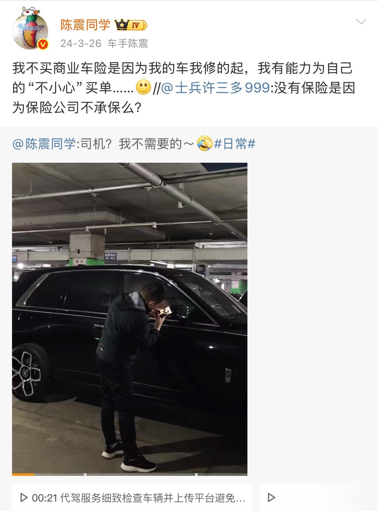 陈震劳斯莱斯发生车祸突然想到前阵子还和朋友讨论买车上保险的事,觉得陈震是老司机且比较有实力,就算发生意外也能修得起没后顾之忧。没想到今天就在榜单上看到了这个话题…大家出行还是要遵守交通法规,即使是老司机也不要盲目自信[衰]