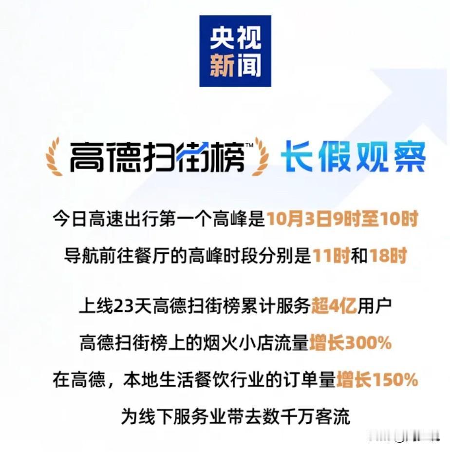 果然,今年的国庆又爆了! 不知道大家发现了没有,这几年一到假期,感觉到处都是人。今年也不例外,国庆假期这几天,全国各地的旅游景区全都爆了。 这一点根据央视新闻联合高德扫街榜发布的《长假观察》,就能看出来,上线23天,高德扫街榜累计服务了超4亿用户,国庆前期,高德扫街榜为上榜烟火小店带来300%增量流量,高德本地生活餐饮行业单量同比增长超150%。 驾车前往的热门古城镇前五是凤凰古城、忻州古城、平遥古城、南浔古镇、大理古城。 驾车前往的热门景区前五是杭州西湖、西安大唐不夜城、北海银滩、开封万岁山武侠城、唐山河头老街。 就这个报道,有两个很明显的感受。 一个感受是现在大家只要有时间,都会想办法往外走,看看世界。 另外一个感受是,使用高德,用高德扫街榜寻找美食餐厅的人是越来越多了。 反正我和周围的朋友现在都爱上了高德扫街榜,因为高德扫街榜能找到很多的宝藏小店,出去吃饭都有不错的体验,再也不用像过去一样做攻略了,省了很多的事儿。 前面央视发布的榜单里,游客最喜欢的餐厅前五是:天水的哈海英麻辣烫、淄博的八大局烧烤、香港的华嫂冰室、景德镇的回家吃饭·景德镇家常菜、北海的越乡小厨。本地人最喜欢的美食餐厅是:北京的鸽子窝、上海的杏花楼、深圳的来福农家院子、武汉的疆上放羊郎、杭州的湘香蒸菜馆。这个榜单得到了本地人的高度认可。 当然,能发现高德扫街榜这么好用,主要还是平时出行也主要用高德导航,尤其是这种国庆出行人数众多的时刻,高德能够给我们提供很多的帮助。 就拿高德的这个鹰眼守护预警技术来说,它能对前方突发情况紧急提醒,避免事故。你们还记得去年梅大高速事件吗?当时很多车辆就是因为这套预警机制的帮助,才逃过一劫。 反正从吃喝住行到高峰道路指挥,高德已经成为了每个人都离不开的国民级应用了。你平时还会用哪些高德隐藏功能,在评论区聊聊?
