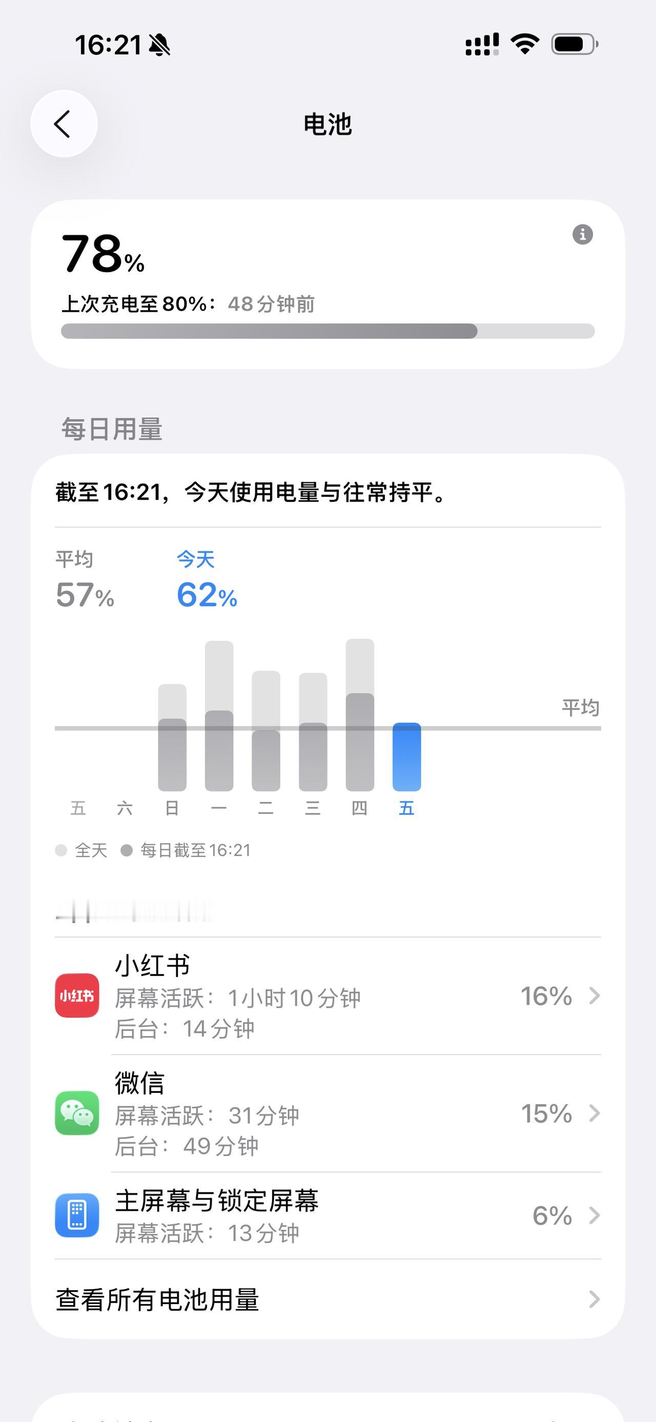 我发现苹果电池健康度只要低于90%,那续航就妥妥开始尿崩了[捂脸]我手上这台iPhone15PM,首发入手那会儿续航还相当可以,现在两年过去,基本得一天两冲了!这还是不玩任何游戏、轻度使用的场景下。。要是玩点游戏那还得了? 所以就算是苹果超大杯,续航也只有在电池健康度90%以上时才可以,即便循环次数低,但是锂电池的日历寿命摆在那里,基本2年是一道坎,逼你换新手机。除非自己动手换个新电池。你们手机这样嘛?