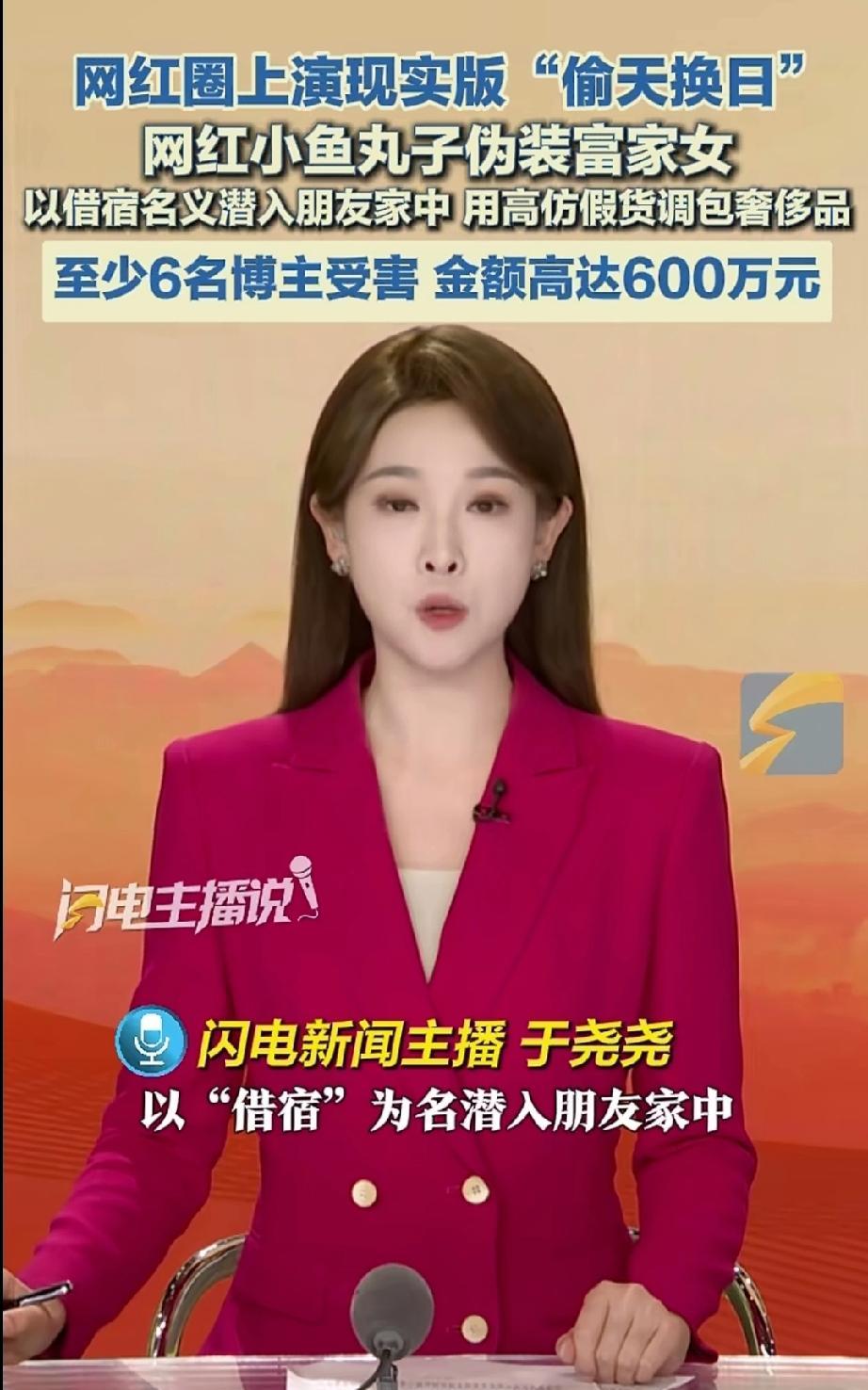 网红圈上演真实版的“偷天换日”,网红小鱼丸子伪装成富加女行骗高达600万元。 这名叫小鱼丸子的网红常常把自己伪装成富家女,拖着厚重的行李箱,以借宿为名混入好友家,盯准人家的奢侈品和包包进行偷窃替换,已有多名好友被骗。 据媒体报道,目前已有6名好友进行举报,警方正在立案侦查。 看似光鲜的背后,实则是引狼入室,有网友就好奇的问了,难道富家女们的智商就那么低吗?会轻易的让这样的网红进入自己的家,还会让她把自己的奢侈品偷走? 也有网友调侃说,小鱼丸子,你赶快拖着行李箱到我家里面来吧,我不怕你偷,也不怕你惦记,说不定你偷换的包包比我的真包包还要值钱呢。