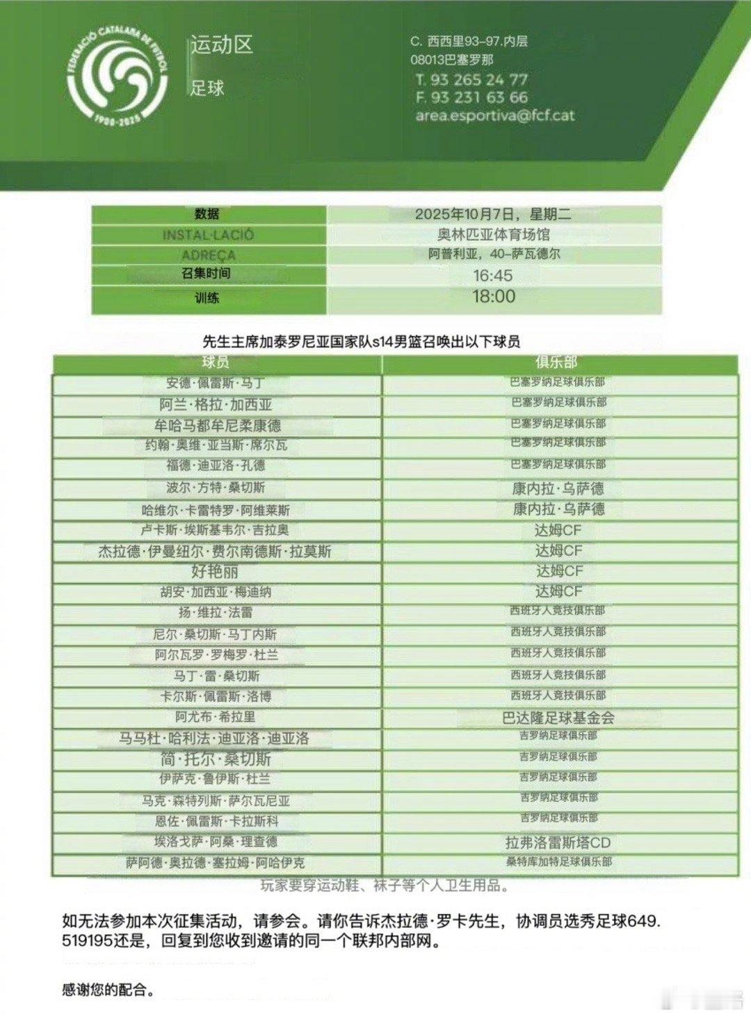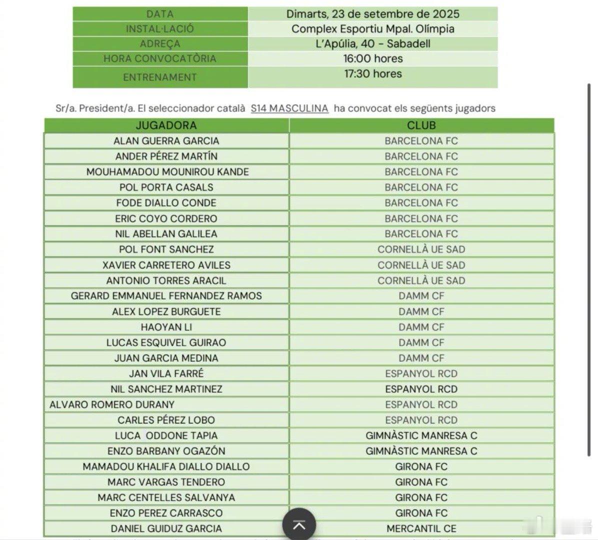 中国足球小将 留洋球员“好艳丽”,再次入选加泰罗尼亚U13集训队(图1、2),图3为第一次入围名单。
