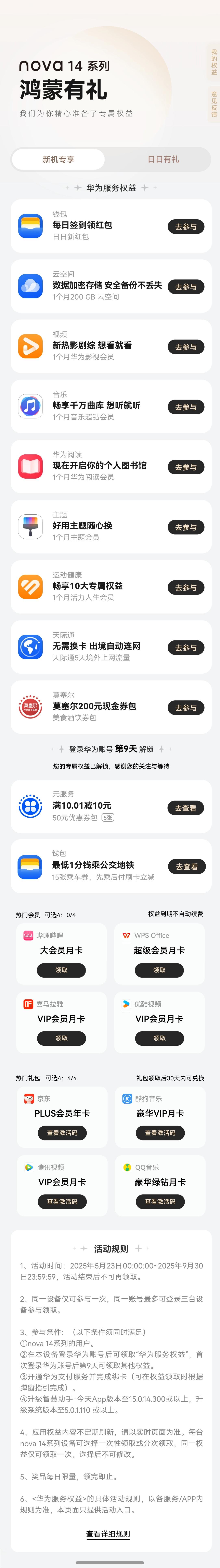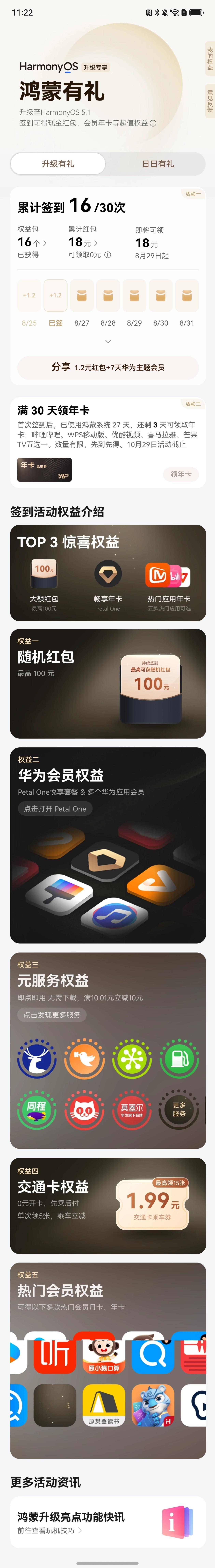 用鸿蒙系统记得多瞧瞧负一屏、鸿蒙5及以上的手机用户在国庆期间带来覆盖吃喝玩乐等多领域的专属权益,从手机桌面右滑,进入负一屏,福利多多[给力][羞嗒嗒]。