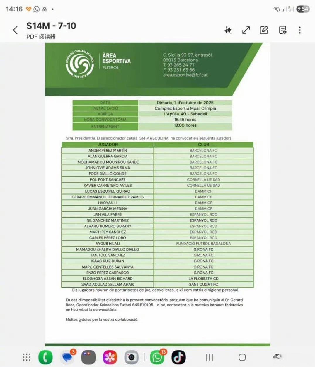 中国足球小将大哥李昊炎,连续入选加泰罗尼亚U14联队(前两期)。 如果能够在大区