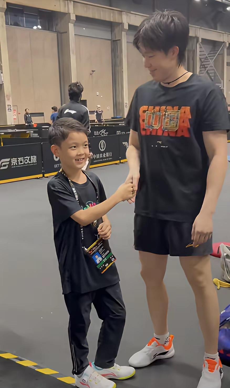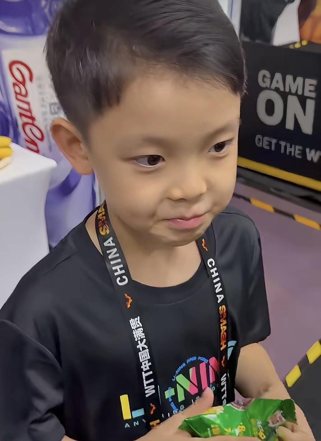 小海螺简直 太喜欢他的大头哥了 今天又到训练馆 给王楚钦投喂零食 并且安静的站在