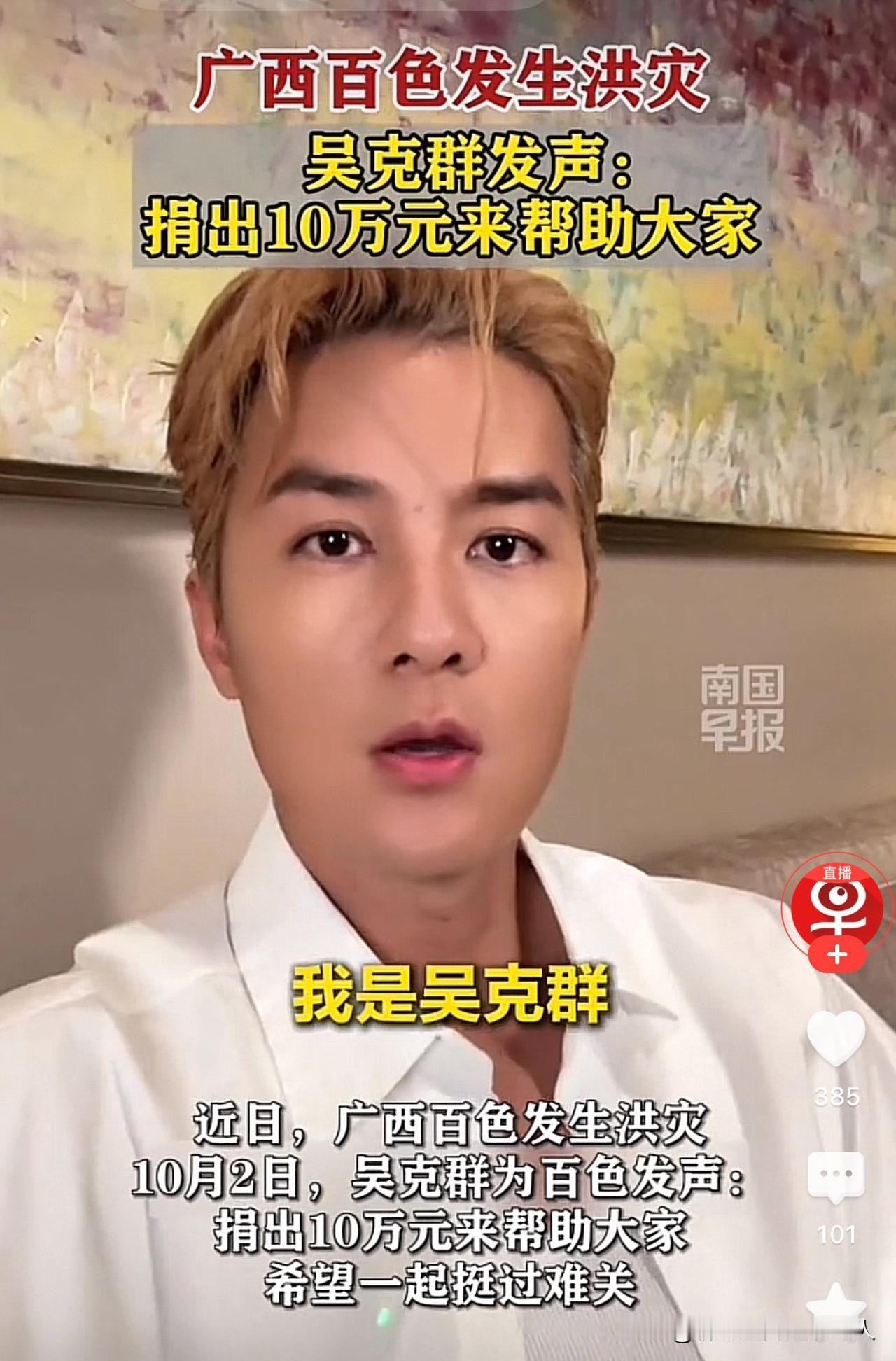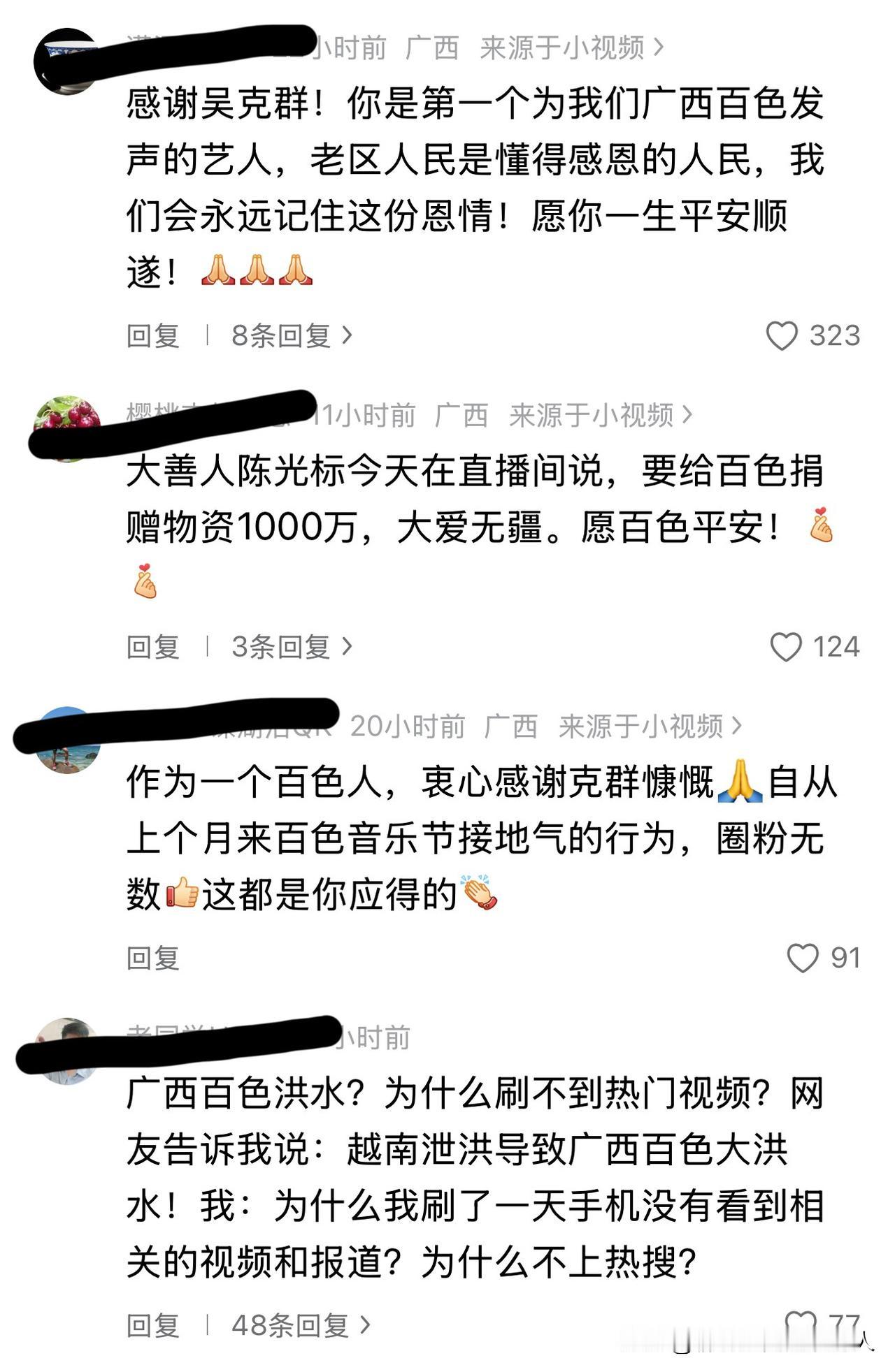 广西百色的这场百年一遇洪灾好像挺严重的,可网上的声音不多啊!相关话题也没什么流量。 是因为国庆吗?大家都在快乐玩耍呢? 幸好有吴克群网上发声,并捐款十万,不然知道的人更少。正能量,好样的!