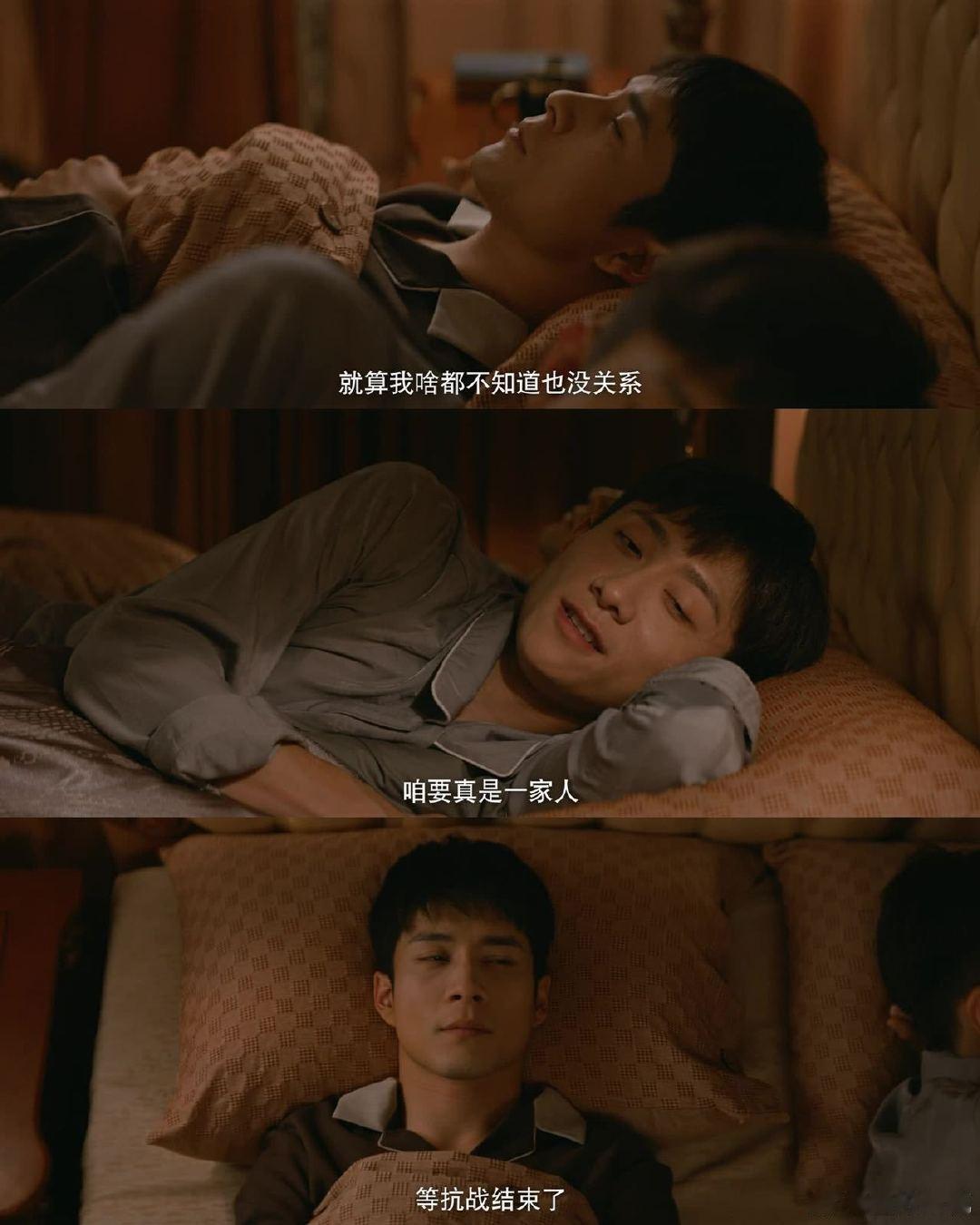 张一山咱们四个把日子过好丁一憧憬战后"娃娃亲"的团圆,顾仰山却叹"装睡的人叫不醒"。温情与残酷碰撞,张一山、韩东君将谍战兄弟情的拉扯感演到极致。 ​​​