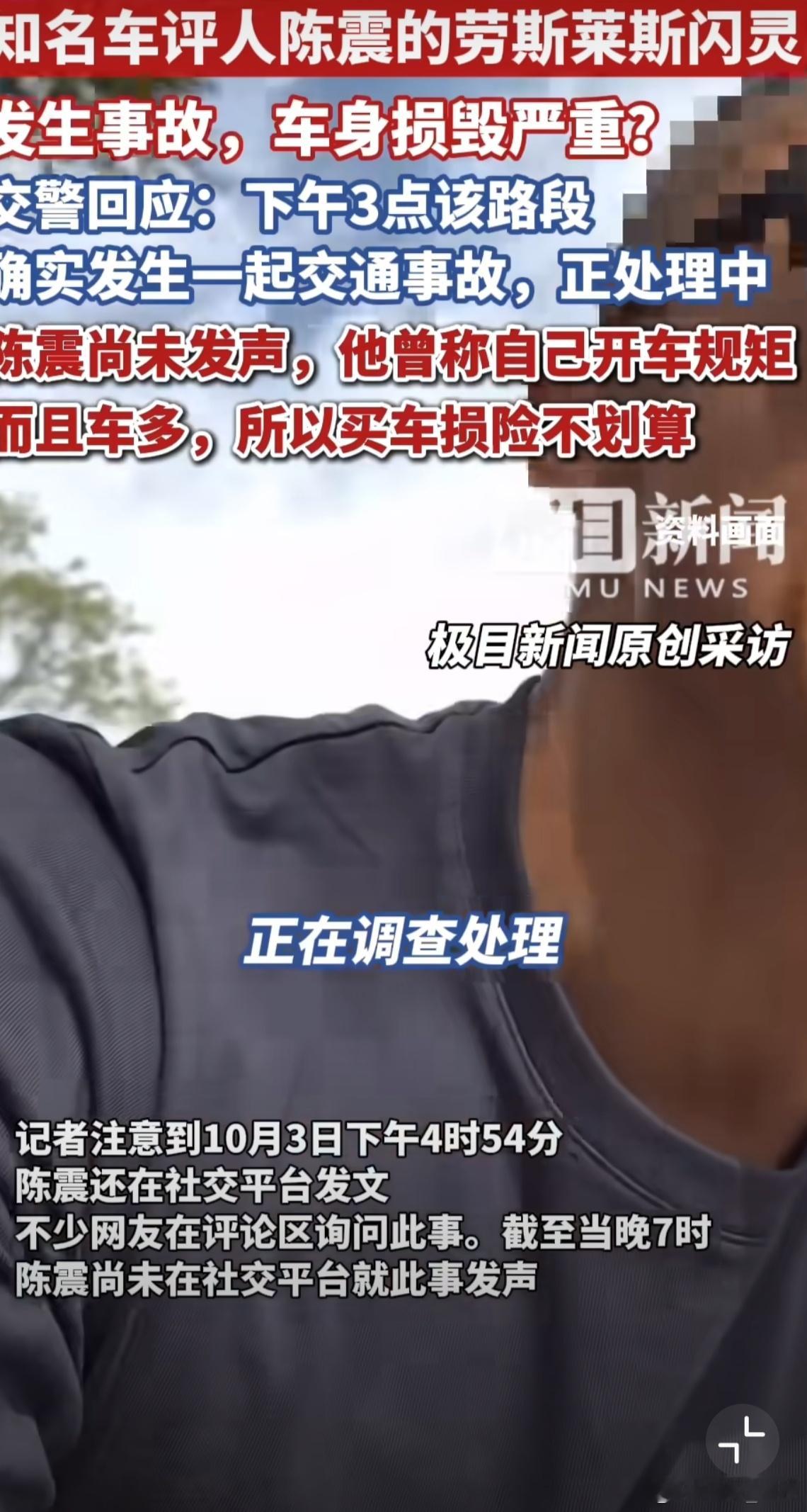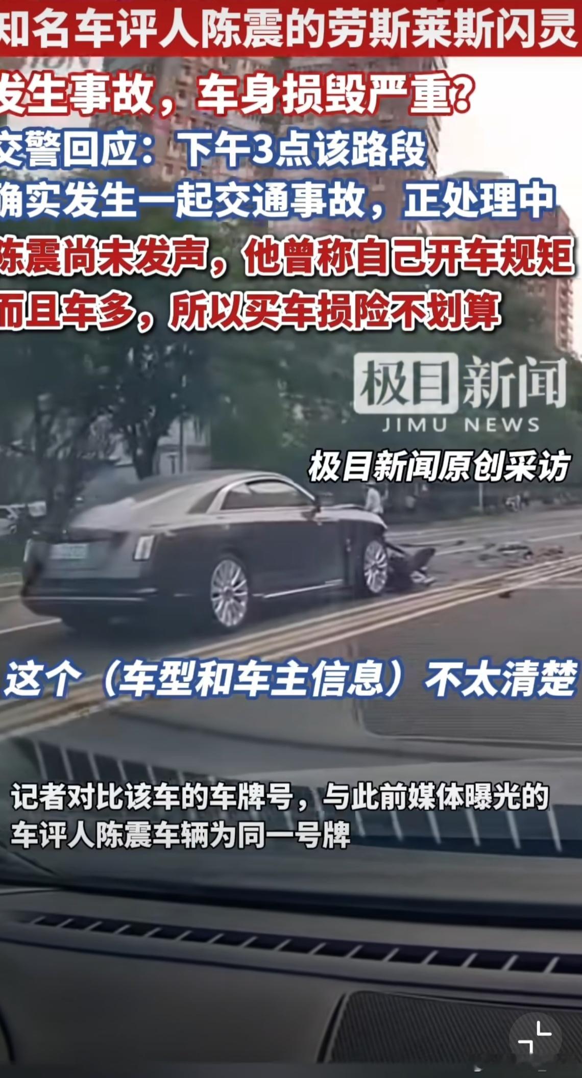 陈震劳斯莱斯发生车祸 至于事故谁都不想发生,首先双方都平平安安。 交警回应陈震劳斯莱斯事故