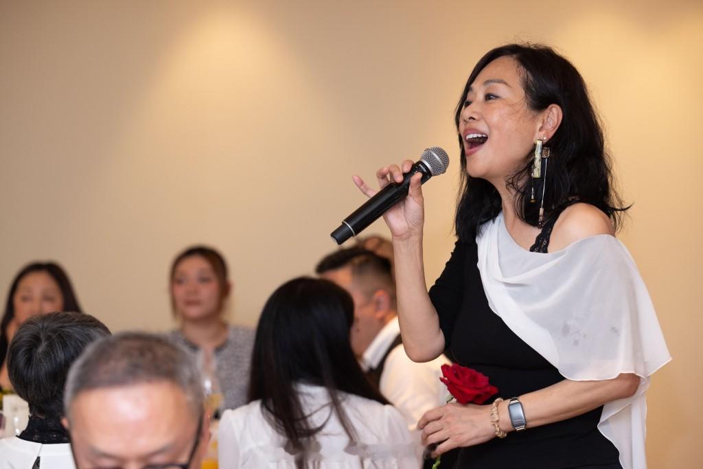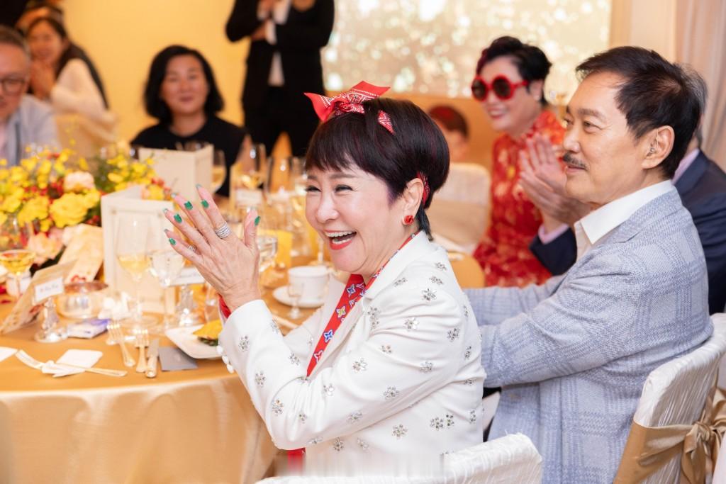 陈淑芬表示:"真的很开心和感动,今天可以和大家在这里相聚,相信大家也知道真的不容易。今次举办这个Party时间有点赶急,其实两年前便有计划在今天举办Party,但这个想法在去年开始便一直在延后,因为大老爷(陈柳泉)在跟演唱会走埠中,不知道他的行程如何编排,所以很难去落实计划和订场地。原本今天打算飞去找大老爷工作的地方和他度过这个金婚纪念日,但有两位好朋友包括拉姑和Simon Tse一直追问我们如何庆祝?他们强调因为是50年,所以一定要'搞'。"她续说:"我跟他们说如果要'搞',那要看天意了,因为在香港我的首选便是半岛酒店这个地方,我60岁时曾在此举行Party,当时非常开心。所以当我们向酒店查询能否租用?答案是可以,因另一常客刚刚改了常规计划,今年有期,这真的是天意。原本我见时间那么急,只想简单请大家到来一起相聚吃一顿饭,但Simon说如我没特别安排,那么便由他来安排。大家由出电梯口,一路所看到的布置,露台的backdrop和LED等都是他的心思。他甚至乎在外地休假时,依旧亲力亲为不停和制作团队通电话,看如何把今晚活动做到最好!今天很开心可以约到大家,在国庆日假期选择来这里,见证及分享我们50周年金婚这重要难忘的一刻。"