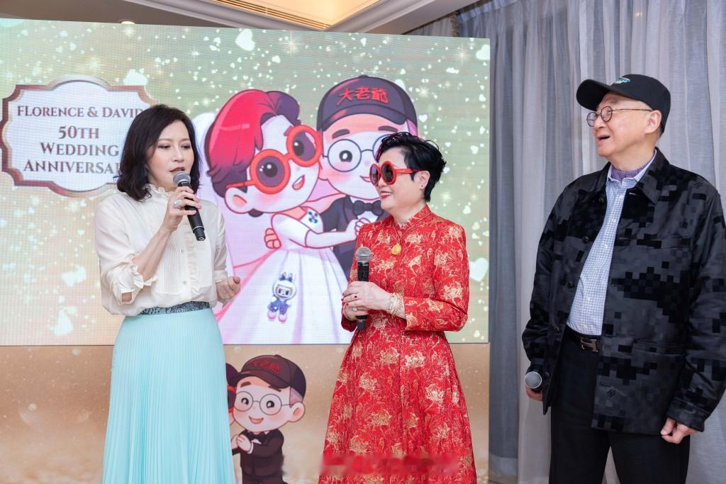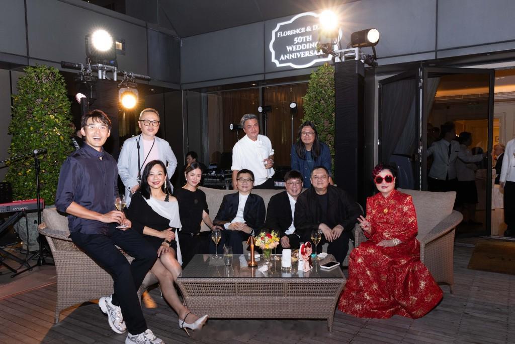 陈淑芬和丈夫陈柳泉结婚50年踏入金婚之旅,日前(10月1日)他俩邀请了一班至亲好友出席「Florence and David 50周年金婚之喜」。晚宴设于半岛酒店附带露台的Garden Suite,当晚适逢国庆烟花汇演,一众至亲好友齐出席,包括他们的家人、胡枫(修哥)、狄波拉(拉姑)、姜大卫、李琳琳、唐鹤德(唐唐)、何丽全、奚仲文、张叔平、陈华国、Wing Shya、顾纪筠、谢天华、连炎辉和身兼主持的林盛斌(Bob)等。大家更把握机会、在漫天烟花的璀璨背景下来个珍贵大合照。