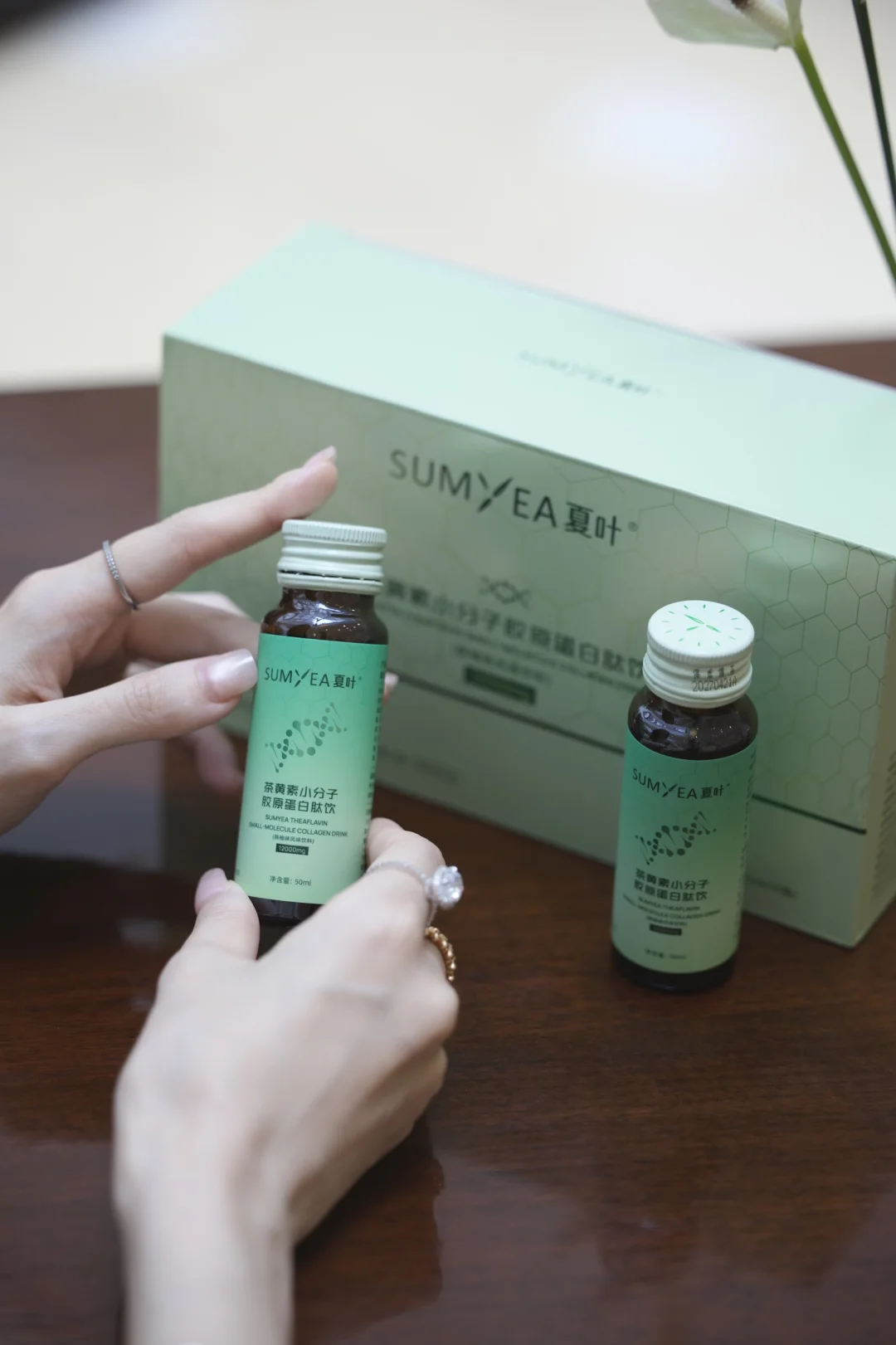 选它之前,研究了下成分,高含量12000mg胶原蛋白肽,最重要的是里面含有10mg夏叶的品牌定制成分「茶黄素」,常听人说以茶养肤🍵,做了功课才知道之所以添加「茶黄素」,这个小东西可以与胶原蛋白协同,keep住胶原蛋白