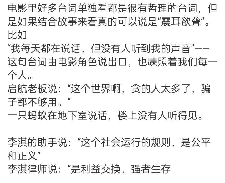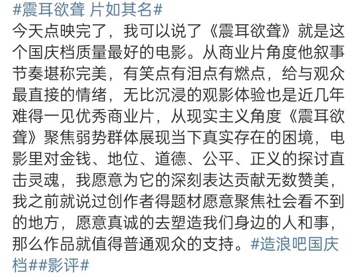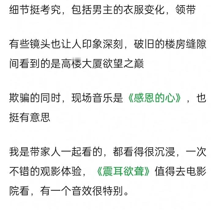 看完《震耳欲聋》的都理解!票房逆跌完全意料之内!开篇就是王炸,后面渐入佳境,檀健次演的灰度律师真的带着小人物的鲜活,后期也有自己的人物弧光和魅力,高潮真的看得人很燃!准备带家人二刷!