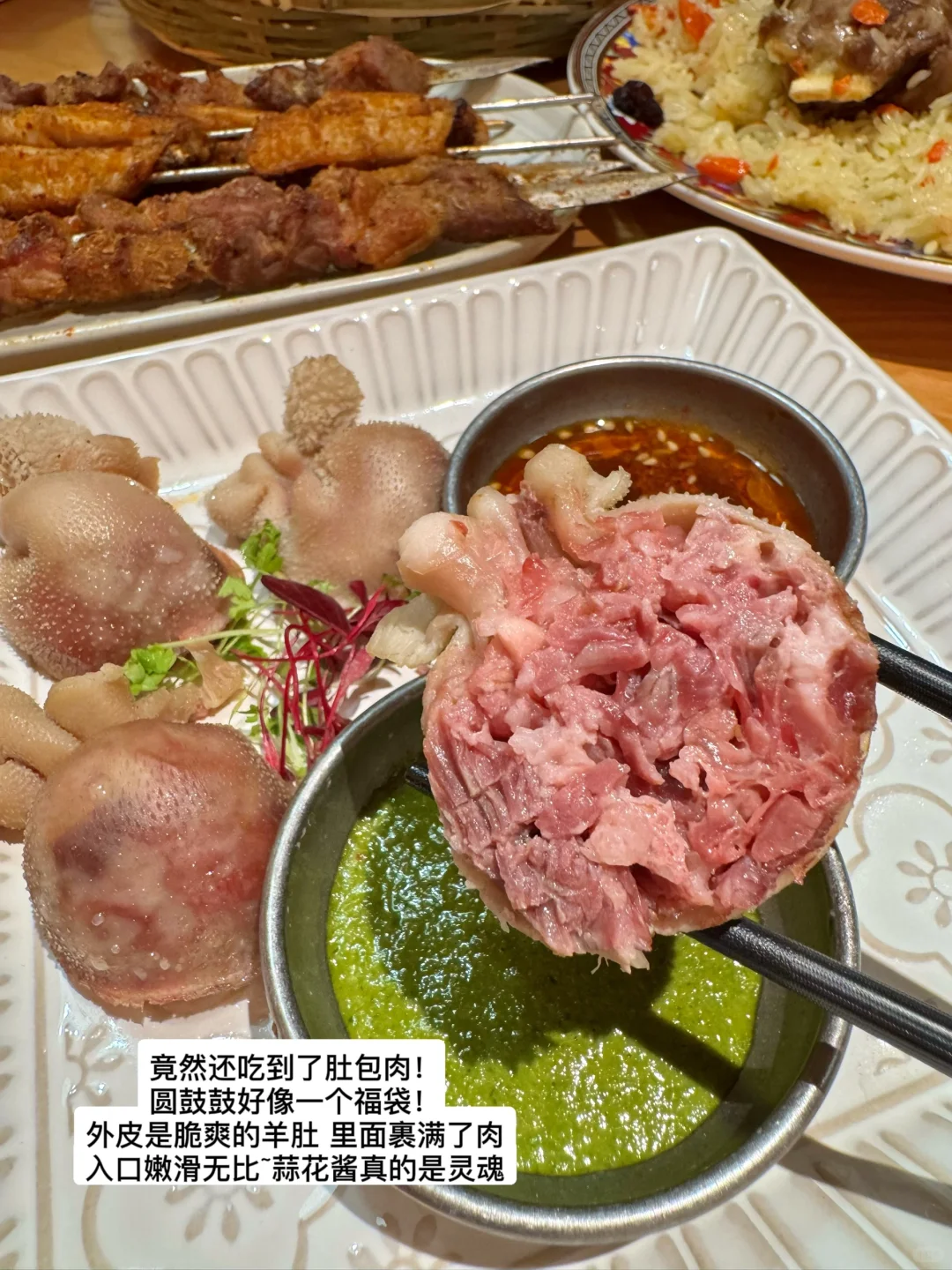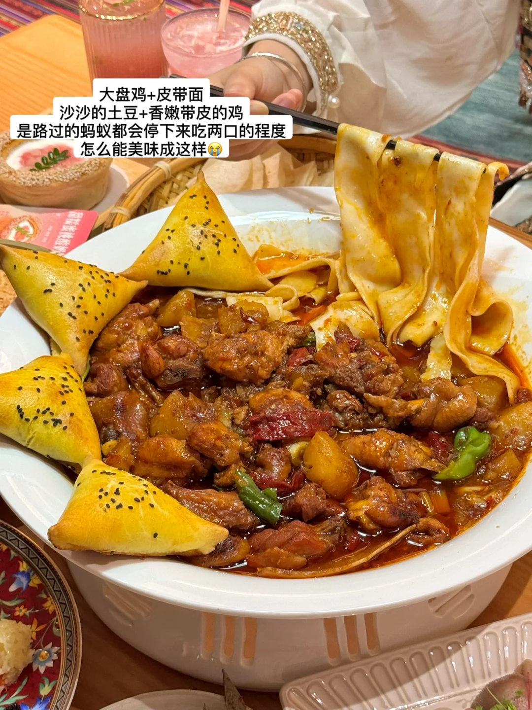我们还点了大盘鸡 份量好足配一份皮带面 真的不要太好吃了!肚包肉、薄皮卷羊肉、新疆奶茶……服了😭没一个不好吃的!!