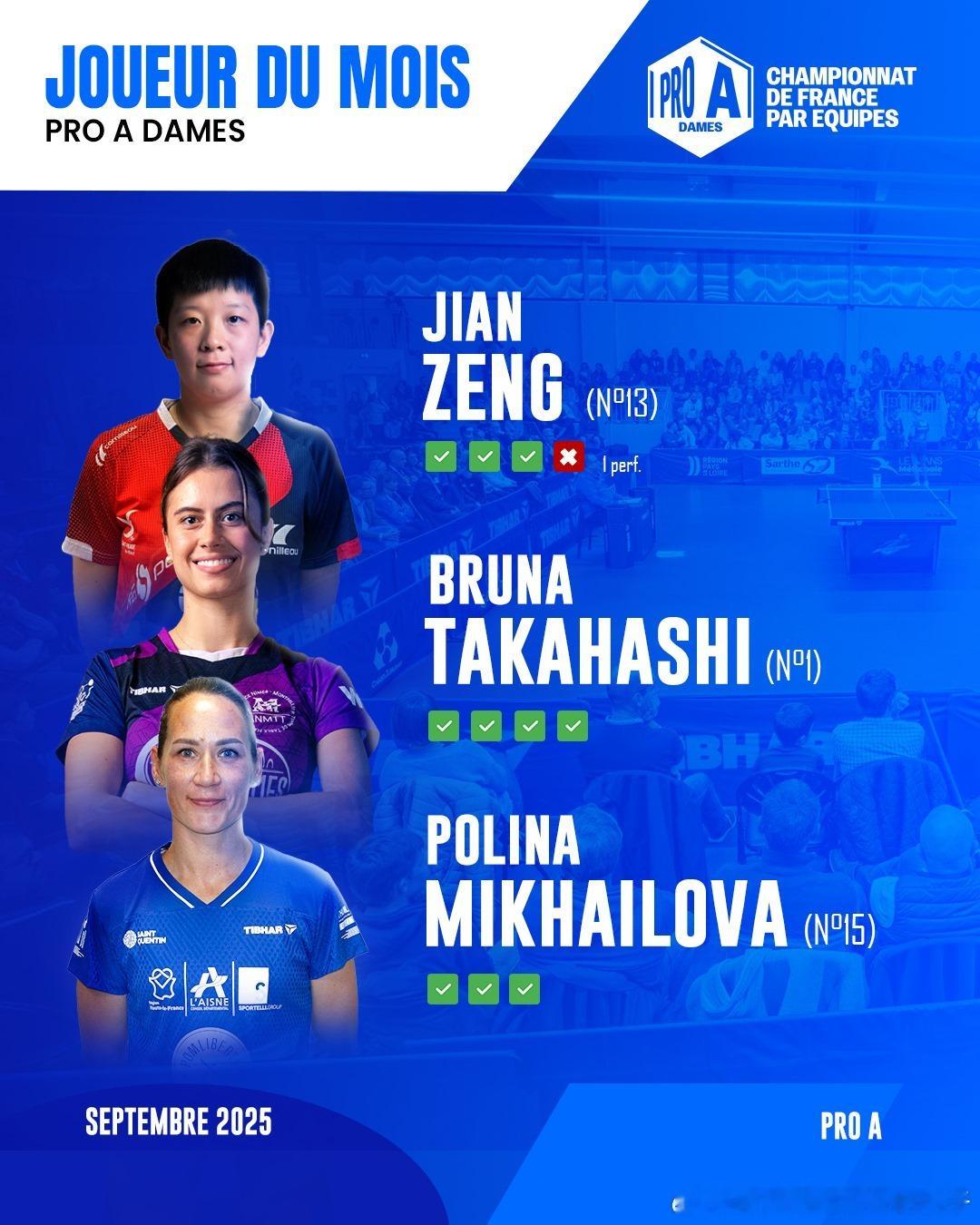 2025-2026赛季法国乒乓球联赛9️⃣月份的最佳球员: