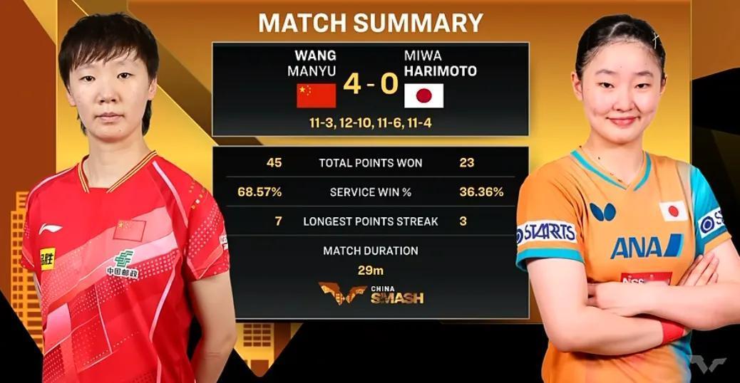 太扎心!张本美和又被打哭了,让王曼昱秒成渣渣,兄妹两个都颗粒无收 在之前结束的一场WTT中国大满贯女单8进4的比赛中,国乒选手王曼昱和日本选手张本美和相遇。本场比赛的关注度是非常高的,一来是因为这是一场中日对决,每当有类似情况发生的时候,大家都想看;二来是因为之前张本美和的状态非常不错,而王曼昱又是打日本球员最有心得的国乒球员,她们两个之间的交锋注定会非常好看。再说了,只要国乒球员遇到了张本兄妹,话题都非常多。 比赛第一局,一上来王曼昱就不手软,打得犀利无比。一波7-0后,张本美和的心态就快被击垮了。尽管之后张本美和苦苦追赶,奈何自身的实力有限。11-3!王曼昱先拔头筹。第二局,张本美和做出了及时的调整,而这也带来了一定的效果。这一局,张本美和几乎都在领先。然而,当她即将拿到赛点的时候,王曼昱连续得分,瞬间扭转了局势。12-10!王曼昱扩大比分。 在第三局和第四局,王曼昱打得更加得心应手,她牢牢控制着场上的局势。不管是进攻还是防守,都让张本美和感到窒息。面对状态不错的王曼昱,张本美和没有丝毫的办法,她怎么打都打不穿。在暂停的时候,张本美和的父亲也没有给她支有用的招,因为他的心里也清楚此时的王曼昱惹不起。就连解说员都表示,在张本美和面前王曼昱无解。事实是,王曼昱把张本美和秒成渣渣了。 有那么一个瞬间,当镜头扫过张本美和的时候,她的眼眶已经泛红。明知道自己打不过,还要坚持,对于一个小孩子来说确实太难熬了。在比赛中,张本美和好几次都放弃抵抗了,球都不想击出去了。值得一提的是,张本美和已经不止一次被王曼昱打哭了,在之前的世乒赛上、世界杯上,张本美和都被打崩溃了,赛后痛哭流涕。和自己的哥哥一样,女单被淘汰后,张本美和颗粒无收。 真的太扎心了!