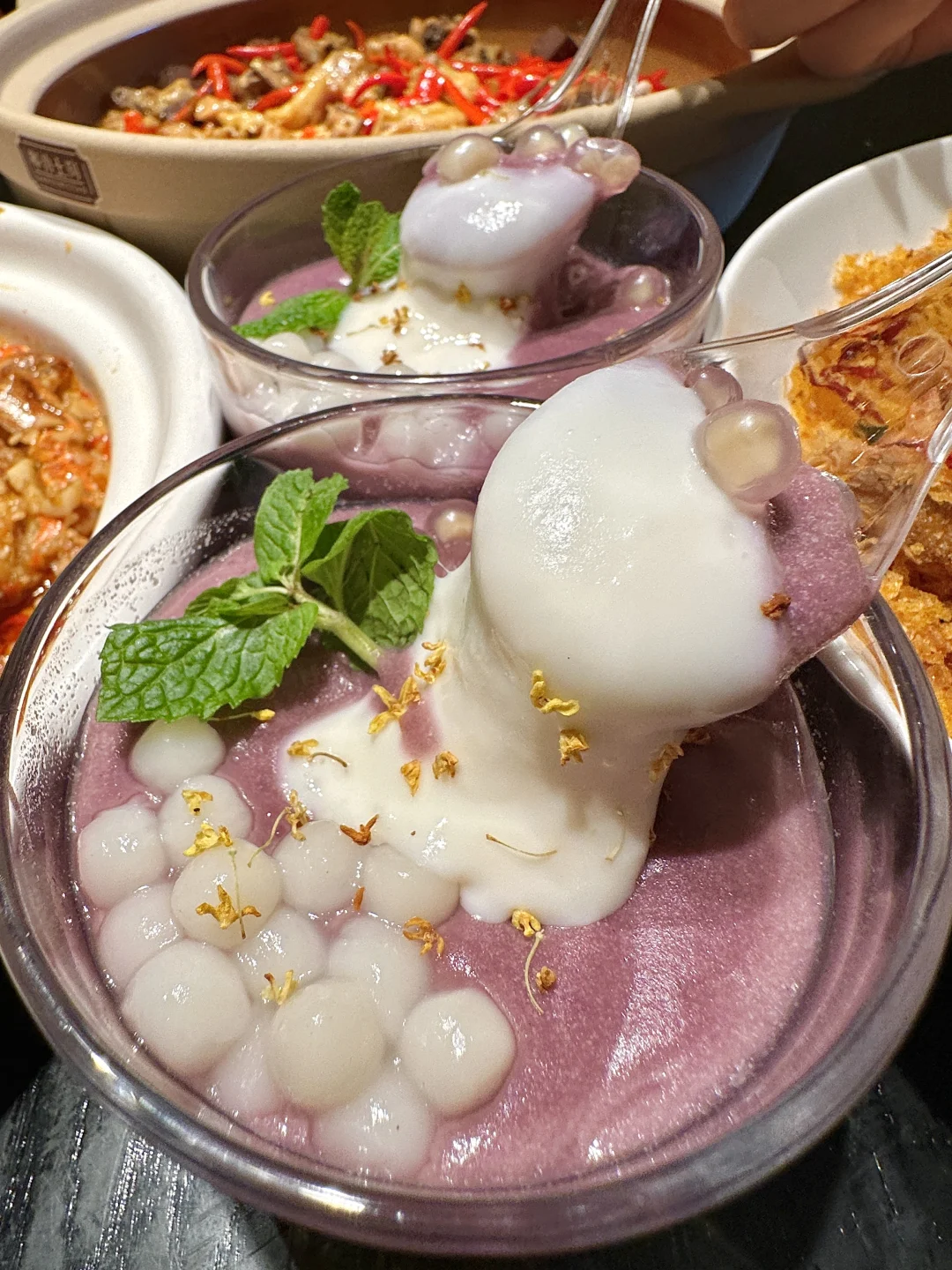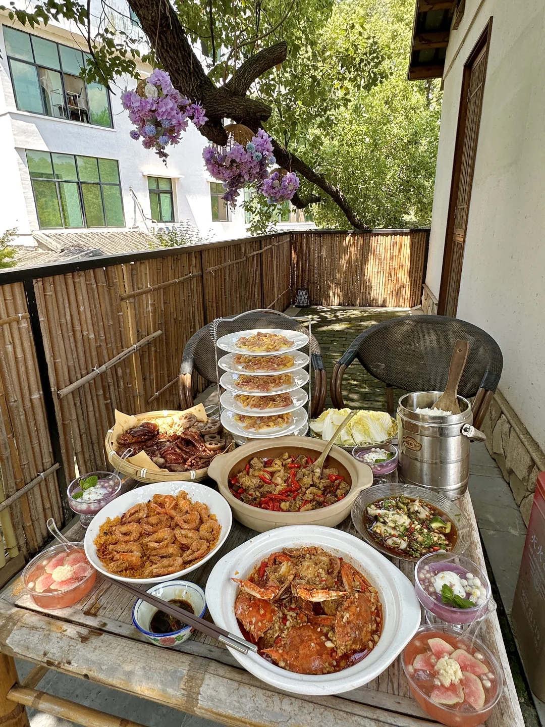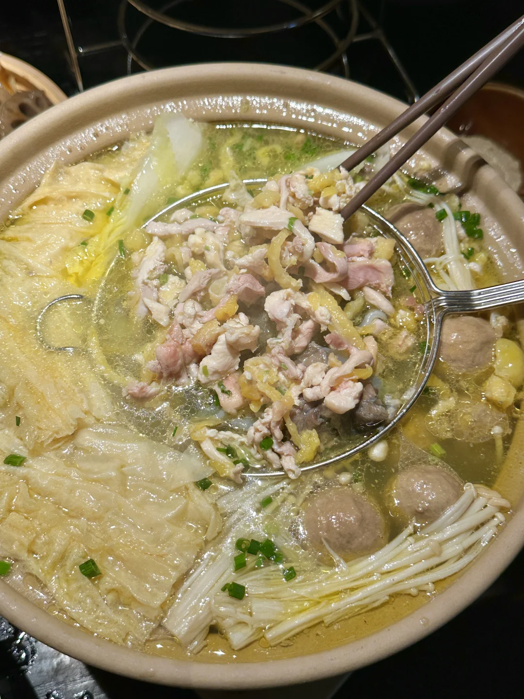 满院子柳树、小桥流水、木屋……一步一景!仿佛来到了苏州。他家主打的鸡肉火锅绝了!鲜鸡汤打底,搭配牛肉丸和甲鱼高温慢煮出来也太好喝了吧!其他甜品小吃也不错~好适合周末带朋友家人来这里聚会!真的不要太惬意!!他家叫📍问客杀鸡