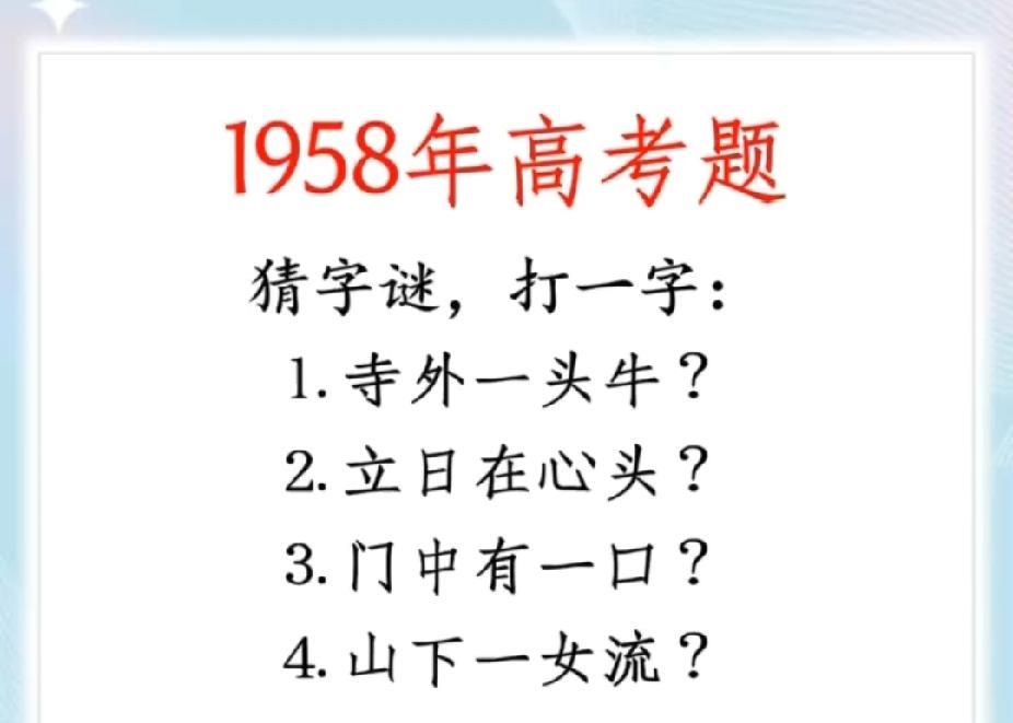 天呐!1958年高考猜字谜,这4个谜面谁能全猜对?