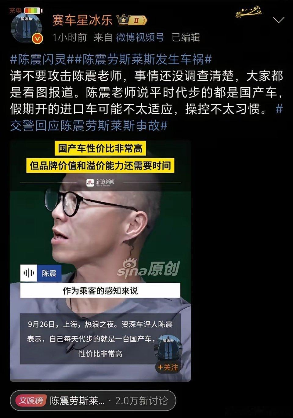因为千万粉车评人驾驶劳斯莱斯闪灵出事故,就像在车圈投了一个重磅炸弹,喜欢和不喜欢陈震的粉丝都炸锅了!