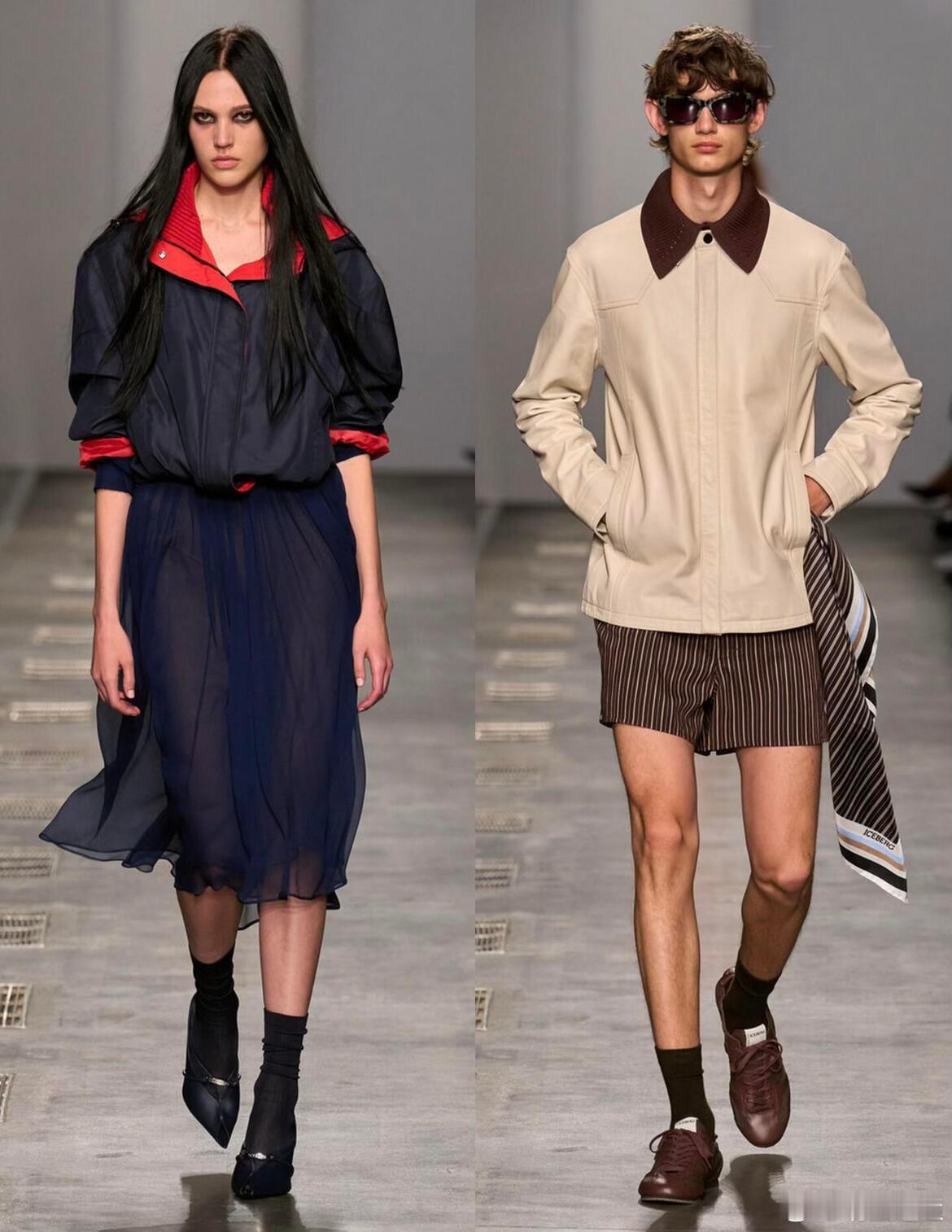 在廓形与细节的处理上,James Long 保留了英式叛逆的浪漫基因。夸张的肩部设计、不规则的下摆,这些充满个性的元素,打破了传统服装的束缚,展现出一种不羁的态度。同时,借助米兰式的精致工艺与都市腔调,为服装注入了高品质的灵魂。每一处缝线、每一个装饰,都经过精心雕琢,体现出米兰时尚对细节的极致追求。这种英式叛逆与米兰精致的完美融合,为日常衣橱提供了实穿又优雅的解决方案。
