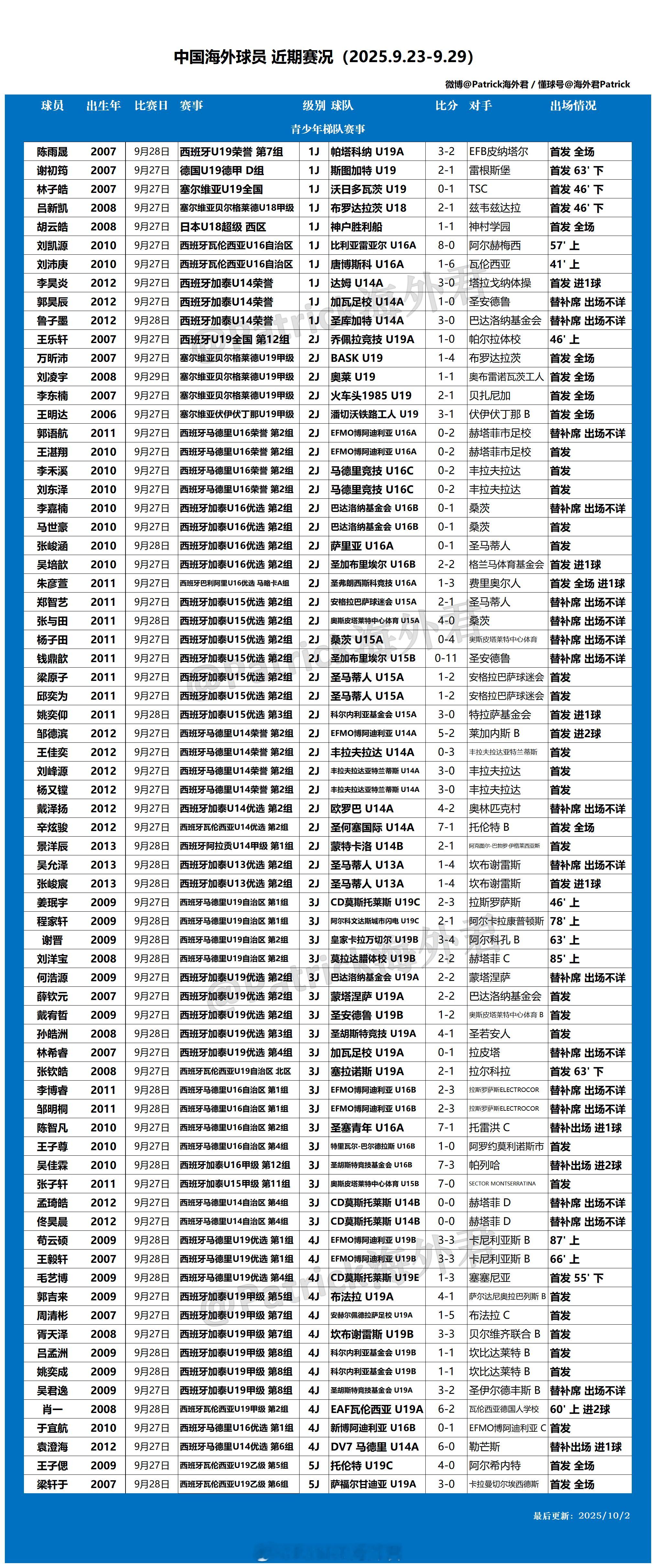 留洋周报 海外球员比赛一览 (2025年9月23日-9月29日)