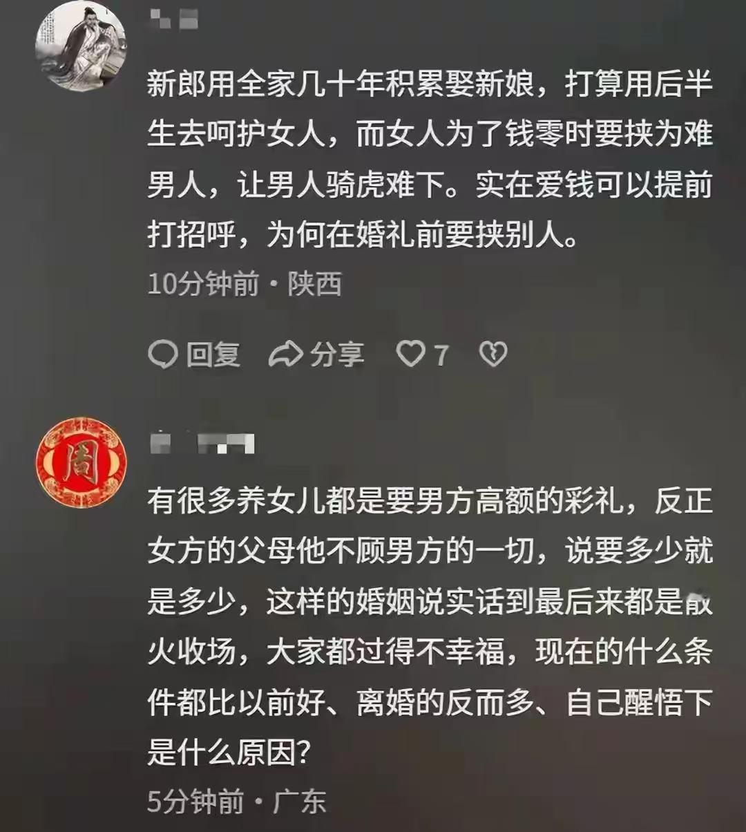陕西新郎婚礼前1小时跳河,现场画面曝光,网友透露女方临时加价 网友评论: 这个