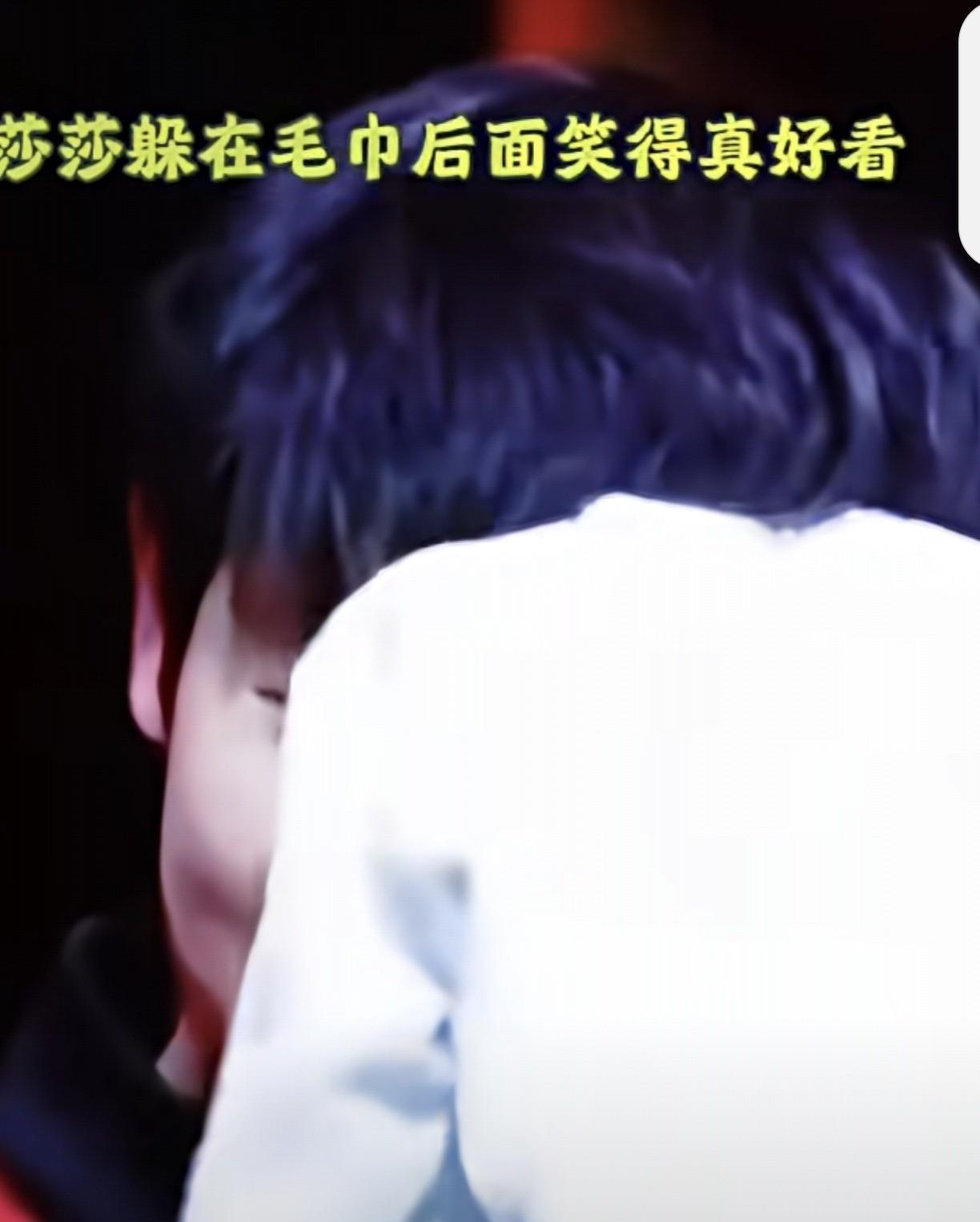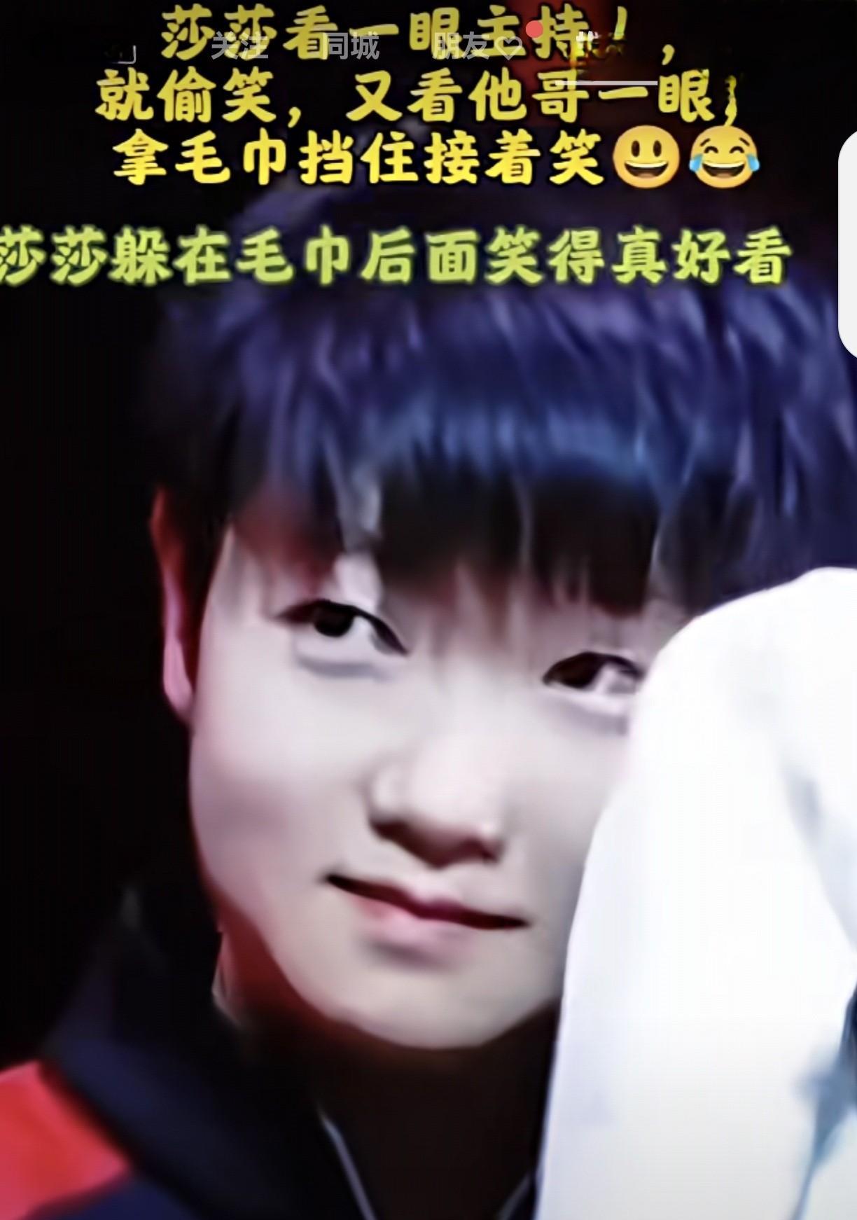 就问莎莎你在忍不住偷笑啥呢?看你这可爱模样,太有意思啦! 一开始是抿着嘴笑,后来又躲在毛巾后面笑!啊呀!莎莎呀,你也太可爱了吧。 那到底莎莎为啥忍不住总想笑呢?原来是看到主持人穿着和她头哥一样的外套—— 可是呢买家秀遇到卖家秀了!她头哥是什么身材,穿什么肯定是比模特还模特的帅气啊。 然后估计是莎莎看到主持人的外套,想到头哥,然后就是越想越好笑,可是又不能当着人家面哈哈大笑。 所以只能忍着甚至躲在毛巾后面笑一会了!哈哈哈,话说莎莎在赛场上是叱咤风云的大将,可台下她还不过是个孩子啊。 看着莎莎的笑脸,真心觉得这样的莎莎不同于赛场上的英姿飒爽,也太好看了吧! 太喜欢这两小只了。莎莎和楚钦是陪彼此赢下全世界的人,也是彼此的整个青春,一起打下江山,一起赢下全世界。莎莎楚钦要永远幸福下去哟! #晒图笔记大赛#