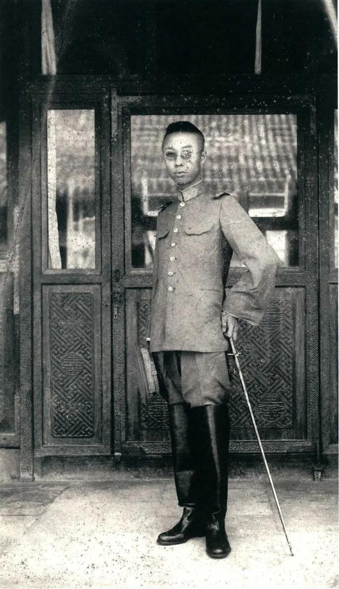 末代皇帝溥仪,拍摄时间1922--1924年,照片中他身着军装,手持佩剑,一坐一