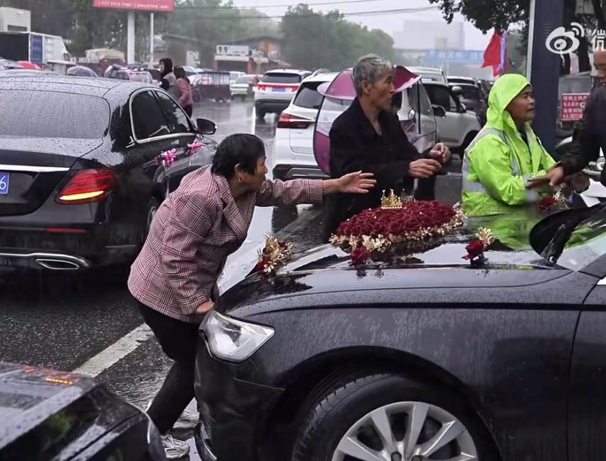 老太冒雨拦婚车,这个营业精神够狠。看车牌是河南,国庆大喜之日,却有这么些老人把不要脸发挥到极致,仗着自己年纪大,主家办喜事不会为难,运气好得上百块,运气不好得几十块,肯定不会被挨揍,要不然就正中他们的下怀,挣的更多,所以这冒雨对他们来说太值得了,猫在家里分币不得。婚车挡路 拦车老人 农村拦婚车 堵门婚车 下跪拦车老人