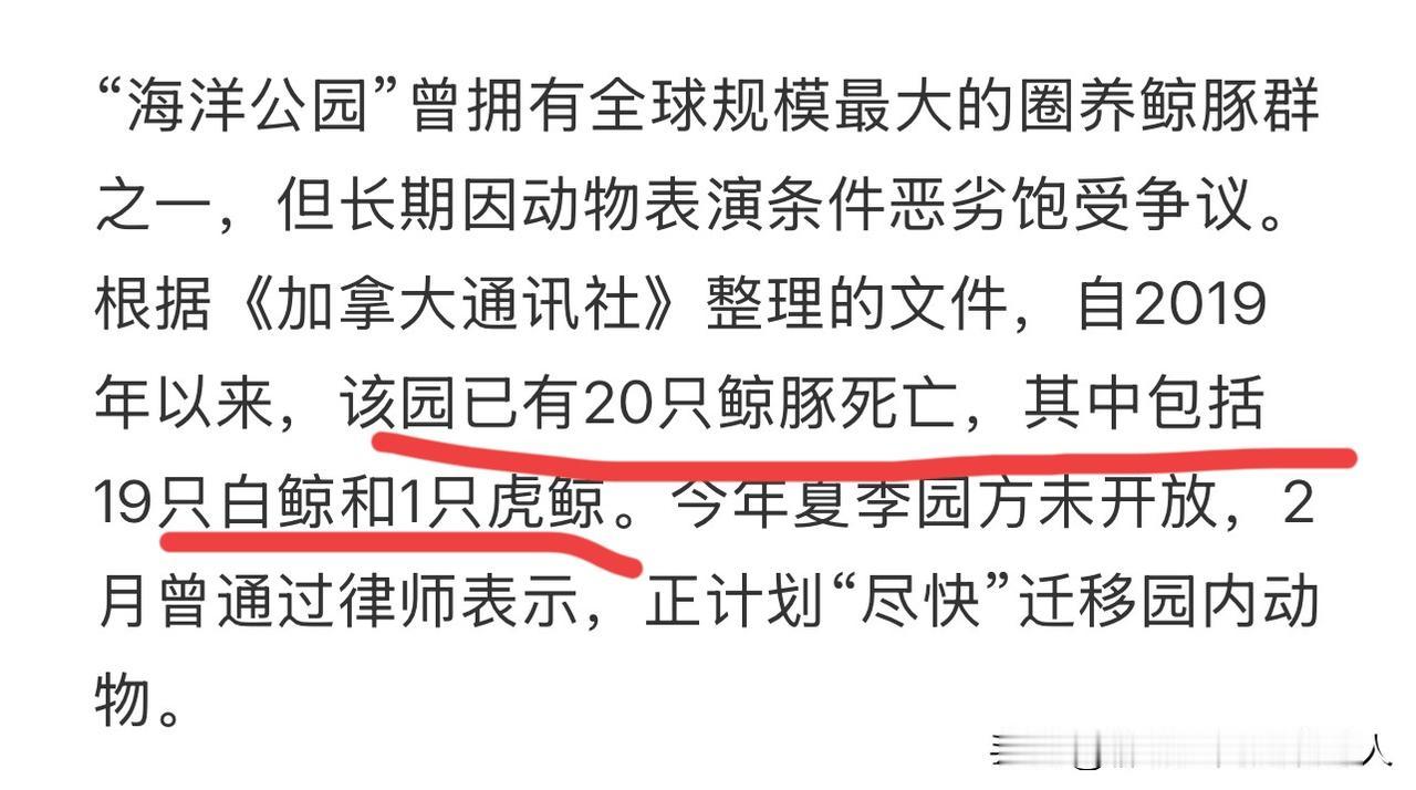 有毛病,加拿大海洋世界宁愿白鲸安乐死,也不卖给中国的珠海长隆海洋王国。 …… 据