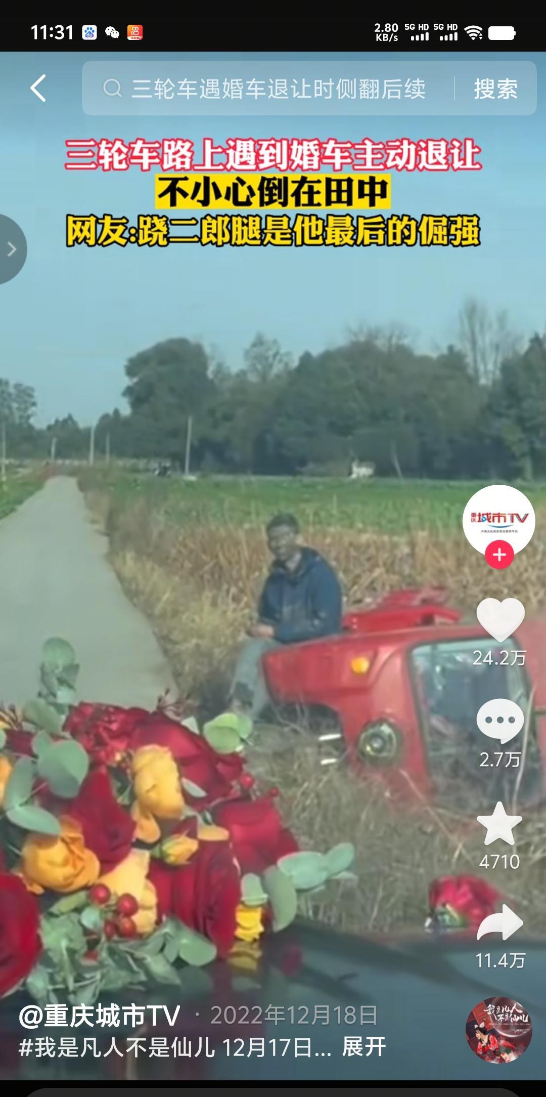 2022发生在四川一段骑三轮车小伙让婚礼车的视频火了,不是因为小伙主动避让婚礼车