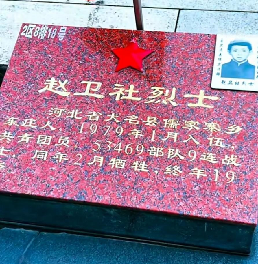 墓碑上的照片,他的脸颊是那样的稚嫩,这是他上学时候的照片,也是他留给这个世界的唯一一张照片。 刚刚参军一个月,就走向了战场,没能来得及留下一张戎装照,就匆匆地离去,他就是赵卫社烈士。 在1979年2月的中越自卫反击战中,赵卫社不幸在战斗中壮烈牺牲。 赵卫社烈士牺牲后,遗体被安葬在广西龙舟烈士陵园,他的生命永远停留在了19岁。