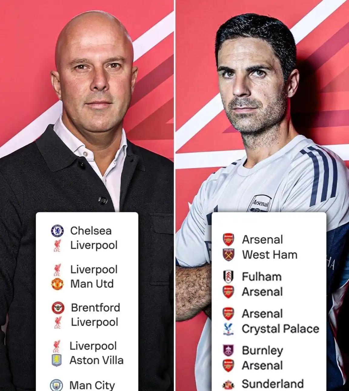 从现在开始,英超冠军之争进入白热化。 利物浦接下来踢切尔西,曼联,曼城。 阿森纳只有水晶宫一个强队。 正常剧本阿森纳反超,领先3分左右。 11月份阿森纳会踢热刺,切尔西,欧冠还遇到拜仁,这才是挑战。 预计两队在12月份积分持平,决战在2026年前三个月,保持健康是最重要的事。[大金牙]