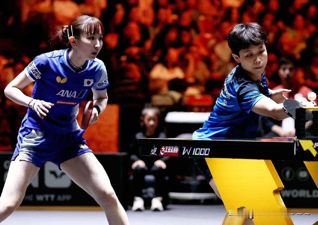 大结局来了! 世乒联大满贯赛中国战女双决赛,中国队PK日、韩组合。比赛太过瘾了,比中国队决战中国队可好看多了。 从前两局来看,双方势均力敌。日韩组合竟然能追成1:1平,给第3局留下了悬念。 第3局开始:中国队队员王曼昱与蒯曼,状态有待于调整,前半局落后比较多,不过,在落后三分的情况下开始发力,一个连续七八板的拉锯战赢得一分,增长了士气,反转拿下第3局。 第4局开始:日本和韩国跨国组合早田希娜与朱芊曦,在落后一局的情况下,这一局非常关键,比赛一开始就咬得非常紧。比分从6:8~6:9再到7:9~8:9。中国队主教练叫了暂停。回来后,从9:9~10:10。 还有两个球,中国队先拿下一分。 漂亮,连胜两球,中国队3:1战胜日韩组合,拿到女双决赛冠军。