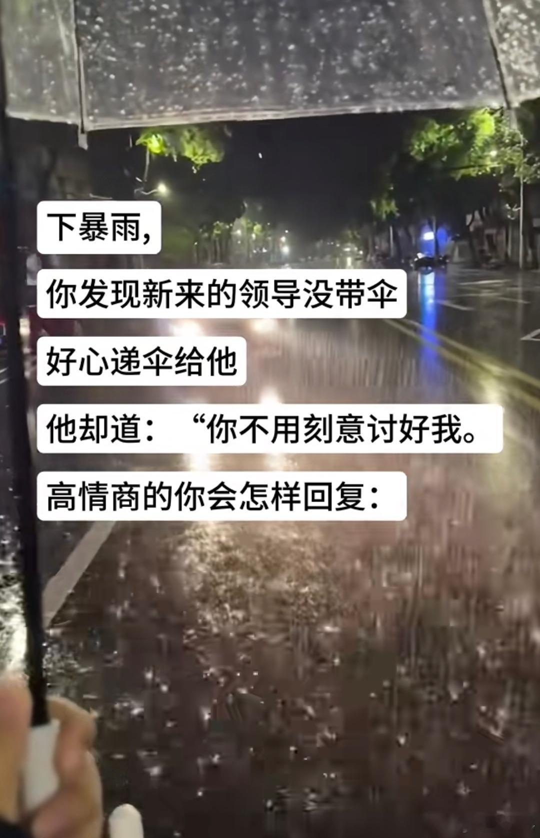 下暴雨时, 你发现新来的领导没带伞,好心递伞给他。