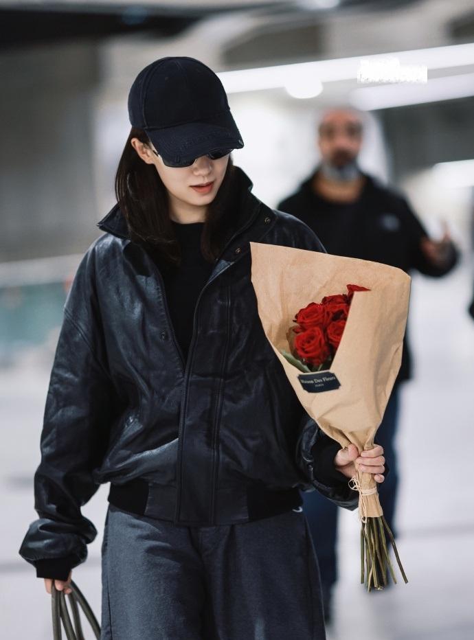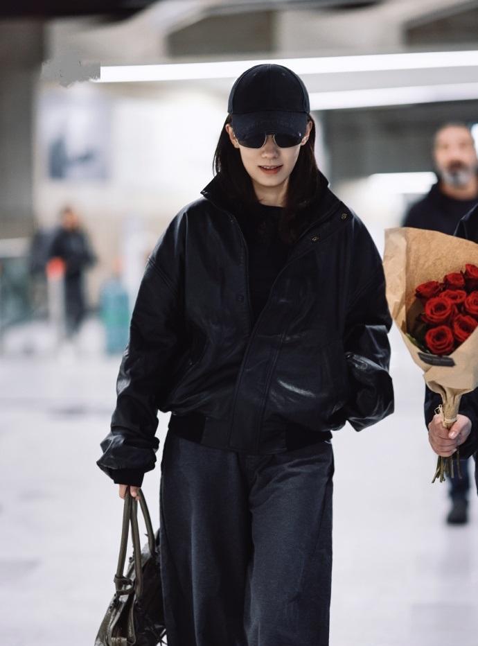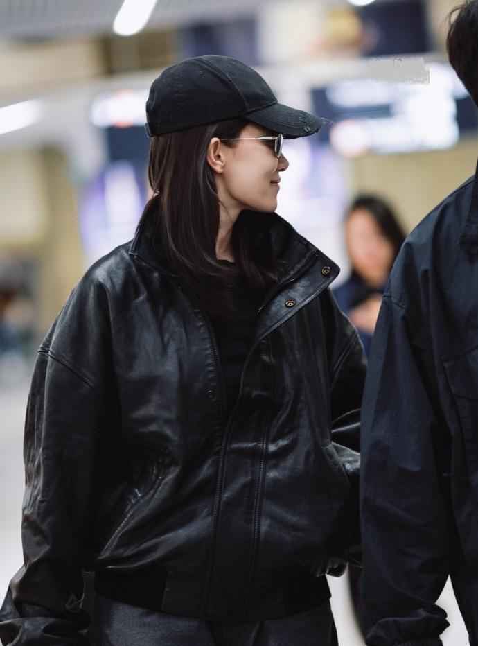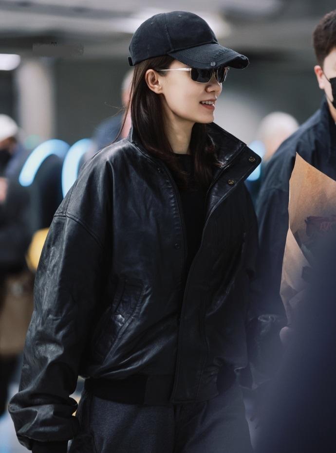 今天张小斐启程前往时装周,她这次搭配了一身黑色的衣服,看起来很酷。 张小斐里面搭