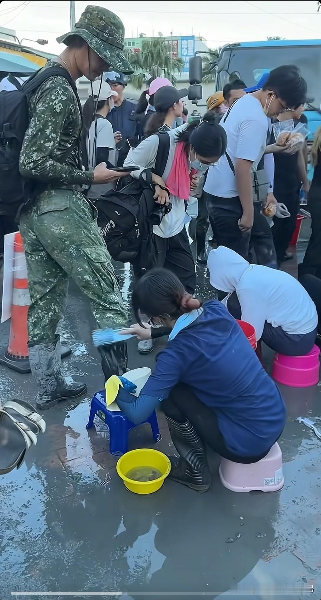 “军爷,您的鞋脏了,我给您刷刷。” 这么多年过去了, 我还是能从台伪军身上 看到当初国民党军队的影子, 这就是牢蒋带出来的兵吗? 你们能不能干点正经事? 灾区刷鞋跟脱裤子放屁有什么区别? #热点观点#