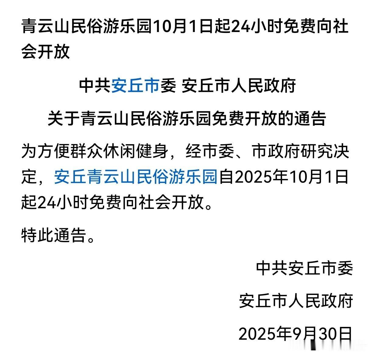 安丘青云山对所有游客免费开放,不收门票,不收门票了!想去玩的朋友们,国庆节抓紧约