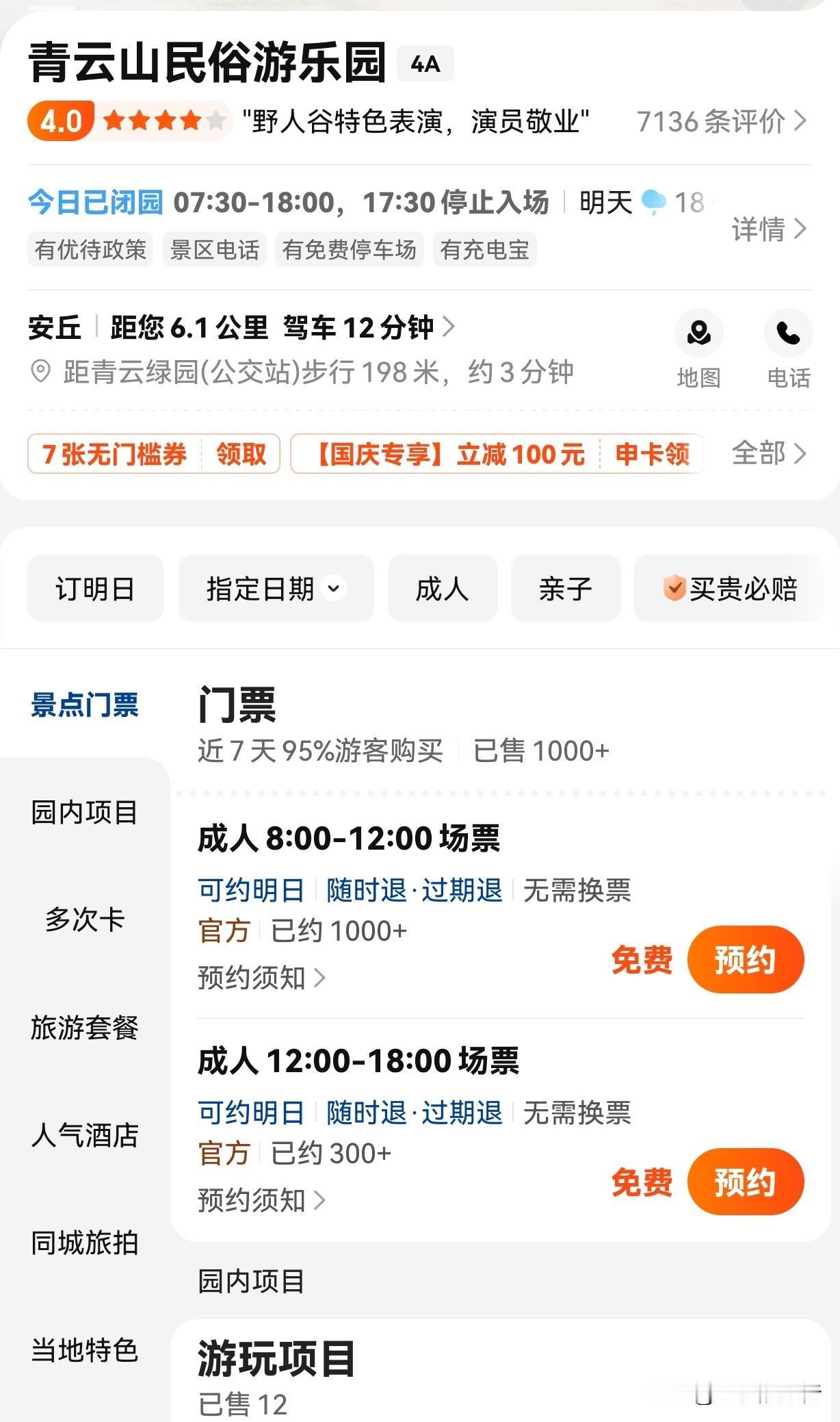 安丘青云山对所有游客免费开放,不收门票,不收门票了!想去玩的朋友们,国庆节抓紧约起来吧! 9月30日,安丘官方下发通知,自10月1日起,青云山免费向社会开放,这件事得民心,顺民意,特别对非安丘市民和外地游客,是一个大大的喜讯。 安丘青云山建设初衷,源自开中国民俗旅游先河的凌河石家庄。这个偏僻的小村,自上世纪七八十年代,便以鲁中典型民居,结合民风民俗,吸引众多游客到访,特别是外国友人,住农家屋,吃农家饭,和主人一起下地劳动,被誉为中国民俗旅游第一村,蜚声海内外。 青云山虽称为山,海拔仅有120米,但景区内地势起伏,沟壑纵横,湖泊众多,林木茂密,自然风光优美。九十年代中期,便把石家庄的民俗游,搬到了山上,建设了齐鲁民俗村,各民族村寨,安丘县衙等,融合民俗歌舞表演,定位青云山民俗游乐园,开业之初,非常火爆,被誉为齐鲁民俗第一园。 园内留云湖,筠石园,青云寺,青云塔,野人谷,海眼井等山环水绕,景色非常不错,天然氧吧。后期又增加了玻璃桥,动物园,儿童乐园,滑雪场,漂流等游乐项目,是放松休闲亲子游的绝佳之地。 [烟花]温馨提示: 入园需提前到美团,携程等小程序,搜索青云山,输入姓名身份等信息,到时刷身份证就可免费入园游玩了。 玩累了,推荐到山下的墨熙鼓巷美食街,古色古香,汇聚众多安丘特色美食,如从厨人口味餐厅,汇丰园等饭店,都是本地人的最爱! 如有时间,下一站也可导航齐鲁桃海,去自驾安丘天路,赏最美梯田。大美安丘欢迎你!!