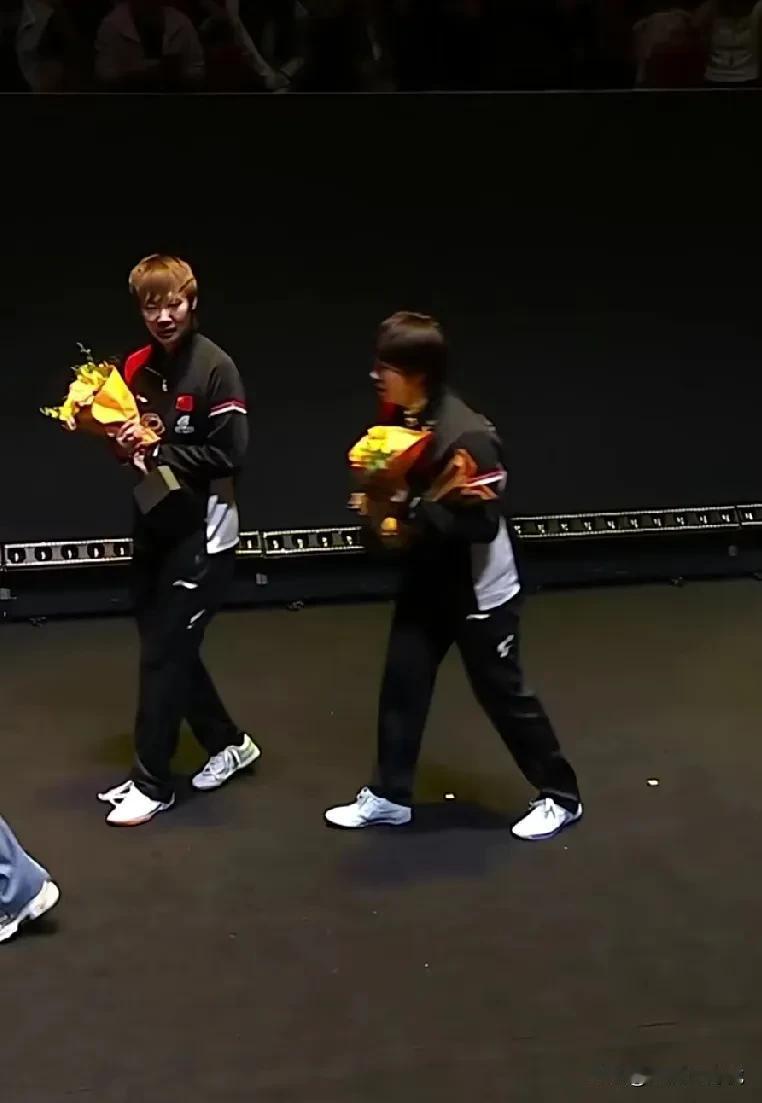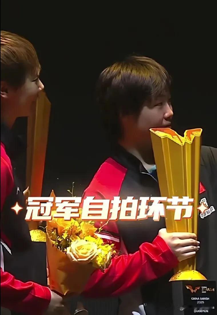 怪不得我昨天看到大头和莎莎颁奖拍照的时候是大头拍的, 我还纳闷呢, 我记得每次大头和莎莎俩都是莎莎拿着手机拍的, 这次是怎么了, 直到我看到曼昱和小蒯曼她们俩拍照的时候,看到小蒯曼快要拿不动奖杯的时候这才恍然大悟 原来是因为这次的奖杯🏆这次的奖杯🏆特别重, 所以这次不是由莎莎来拍照,是大头