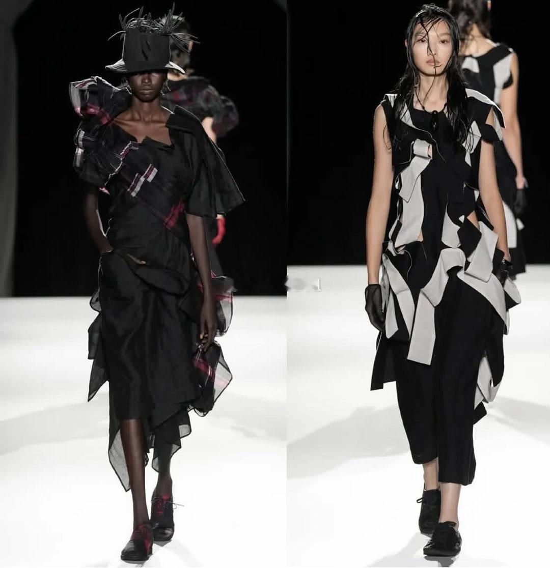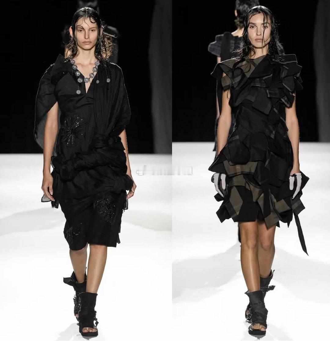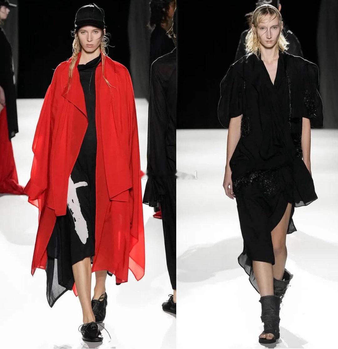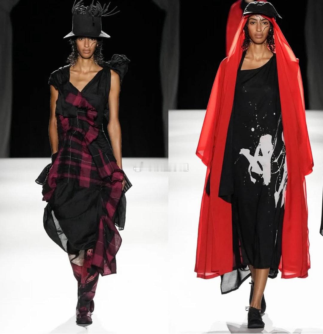 山本耀司(Yohji Yamamoto)在巴黎时装周发布了2026春夏系列,再次以标志性的「黑色美学」为调,系列虽然点缀了白色与红色,但黑色仍占据绝对主导,延续了山本耀司经典的暗黑风格。