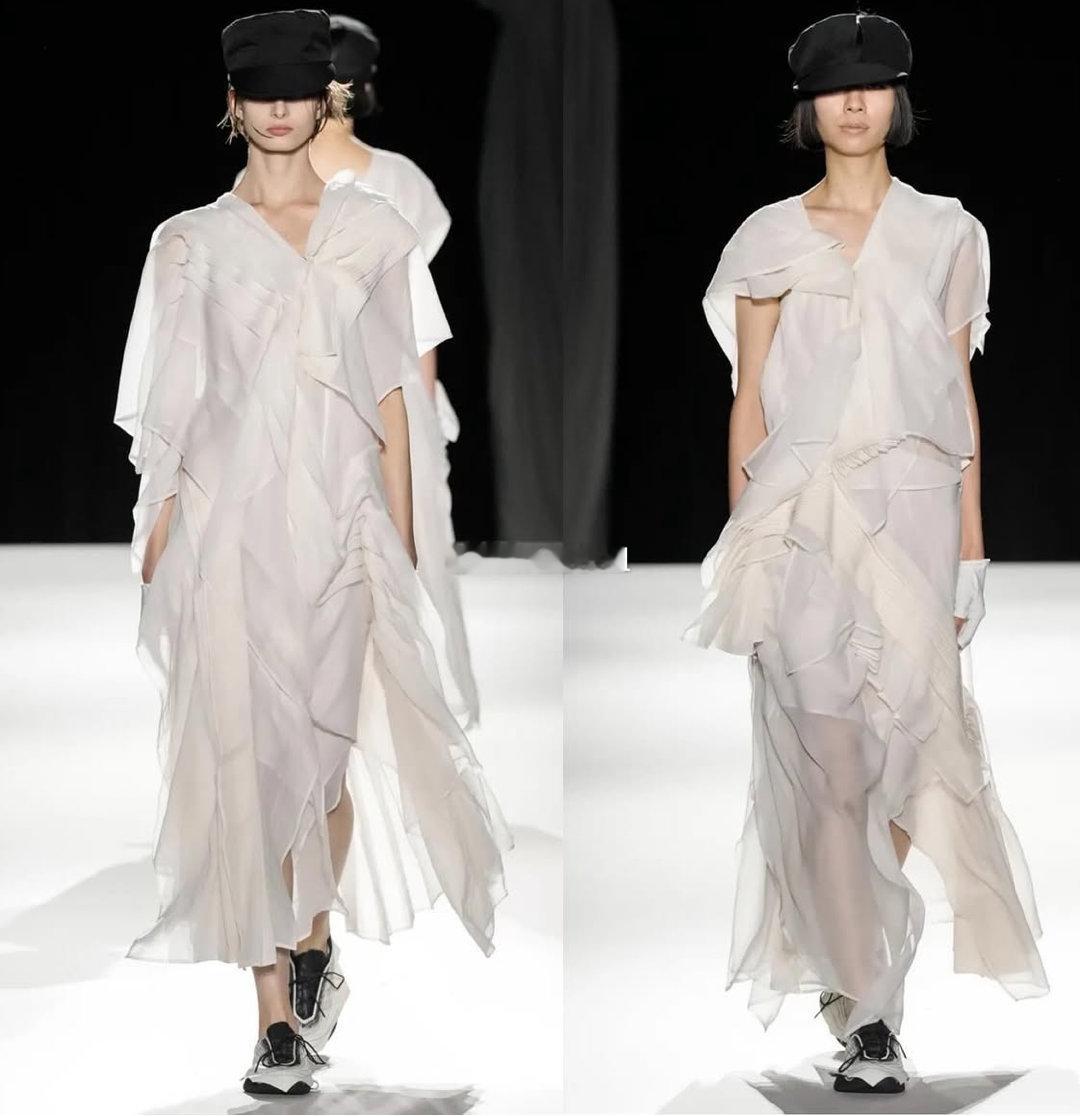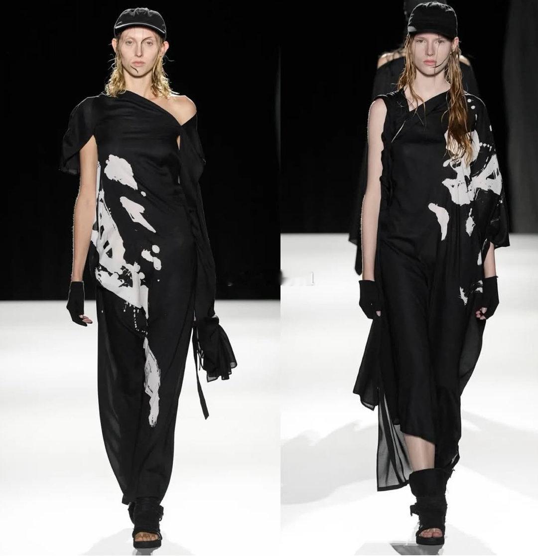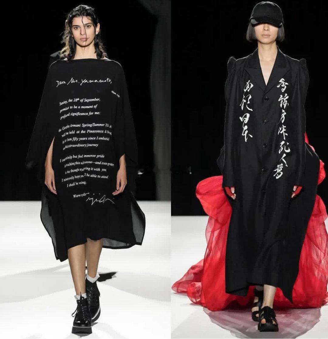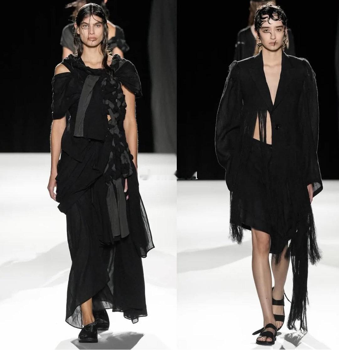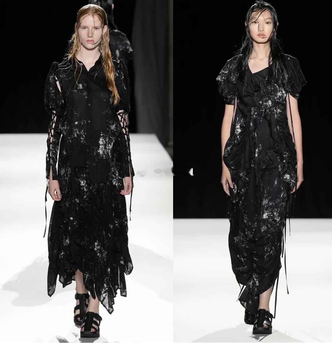 山本耀司(Yohji Yamamoto)在巴黎时装周发布了2026春夏系列,再次以标志性的「黑色美学」为调,系列虽然点缀了白色与红色,但黑色仍占据绝对主导,延续了山本耀司经典的暗黑风格。