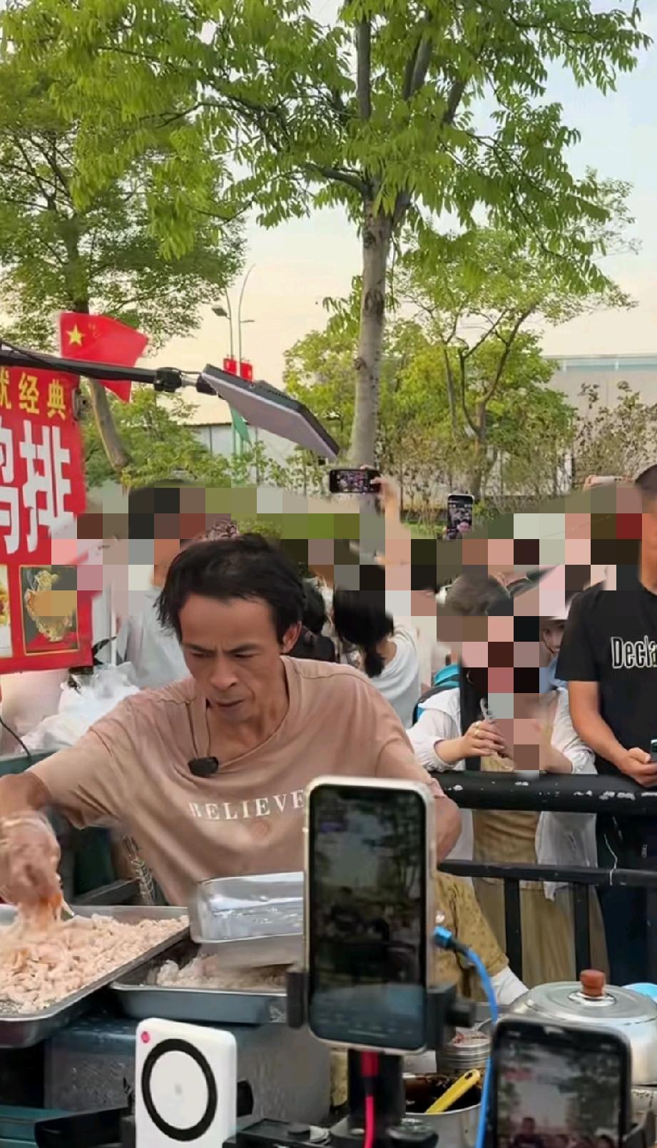 鸡排哥国庆前说了,它人流量大我将准备9部车子去应对,就像打仗对决一样,你不是人多吗,那我车也多看谁厉害,开会的时候绝对逻辑清晰,思维缜密,说话铿锵有力。 这才第四天把鸡排哥累的,知道人会多但没想到这么多,这个场面完全把控不住了,实在太多了根本炸不过来。 我感觉这个模式搞错了,应该他准备20部炸鸡排车子,自己在家腌制鸡排让别人炸,然后他布置一个台子在上面合照和聊天,再说一些激励年轻人的话,这样就不用太累了,照这样下去这个国庆累够呛,肉眼可见的又瘦了不少。