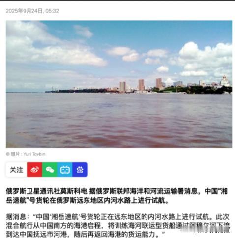 东北出海口真的来了!中俄选定的航线,大出美日意料:怎么不按常理出牌 俄卫星社早就放了消息:中国货轮 “湘岳速航号” 从苏州太仓港出发,先奔着俄罗斯库页岛东边的瓦尼诺港去,接着一头扎进远东的内河水道往西开,最后稳稳停在黑龙江抚远港。 谁都知道东北缺出海口不是一天两天了,之前外界都默认中俄得死磕图们江项目,毕竟去年联合声明里还提过这事,普京甚至专程为这事儿跑过一趟。可图们江那摊子事儿太复杂,地缘关系、基础设施一堆麻烦,短期根本落不了地。美日大概算着日子,觉得怎么也得等个十年八年,没承想中俄转头就把远东的内河水道盘活了,这操作属实打了他们个措手不及。 这条航线藏着不少门道,选瓦尼诺港当中转站简直是神来之笔。这港口是俄远东第三大港,冬天结冰不厚,找破冰船帮忙就能全年通航,还能跟萨哈林岛的轮渡连起来,等于天生带了物流枢纽的底子。中俄又一起砸钱疏浚河道、扩建码头,把 3000 公里的阿穆尔河航运系统彻底打通,“湘岳速航号”这种海河两用船正好能派上用场,海里能跑内河也能钻,完美适配这条航线。 现在这航线可不是纸上谈兵,今年6月同江口岸西部作业区开航,两艘千吨级驳船装着 1130 多吨石材、电梯配件,18 个小时就到了俄罗斯哈巴罗夫斯克港,货值直接干到 2000 万。那边计划全年要运 20 万吨货,水泥、有机肥、铜精粉都靠这条线周转,已经成了中俄大宗贸易的 “主力军”。 再看东北的出口数据,光辽宁今年前五个月粮食出口就涨了34%,水泥更是暴涨2954.8%,这么多货要是还走老路子,成本高得吓人,这条新航线等于是给东北的外贸开了条快车道。 美日觉得意外,更因为这条航线戳破了他们的封锁盘算。这些年他们在亚太布点,就想把东北的出海通道堵在日本海和西太平洋之间。结果中俄这招海河联运绕开了所有敏感节点,东北的农产品、工业品走内河进俄远东,再从瓦尼诺港奔太平洋,根本不用看别人脸色。 更妙的是,这条线还能跟俄罗斯的能源通道接上,俄的铜精粉、有机肥顺着内河过来,东北的建材、机械送过去,互补性拉满,等于把经贸纽带焊得更牢了。 说白了,中俄根本没在图们江的死胡同里耗着,反而盯着远东的内河做文章,既避开了复杂的国际纠纷,又能快速落地见效益。美日大概没算到,这看似绕远的航线,其实是条“近路”,不用等各方协调,不用砸几百亿搞从零开始的基建,借着现有港口和河道稍作升级就能用。 今年刚试航就有实际货运量撑着,后续再把运能提上去,东北的货就能顺着这条线直通太平洋,这账算得比谁都精。美日原本等着看遥遥无期的笑话,没成想中俄已经把出海口的实锤砸在了眼前,这波不按常理出牌,确实把他们的战略算盘打乱了。