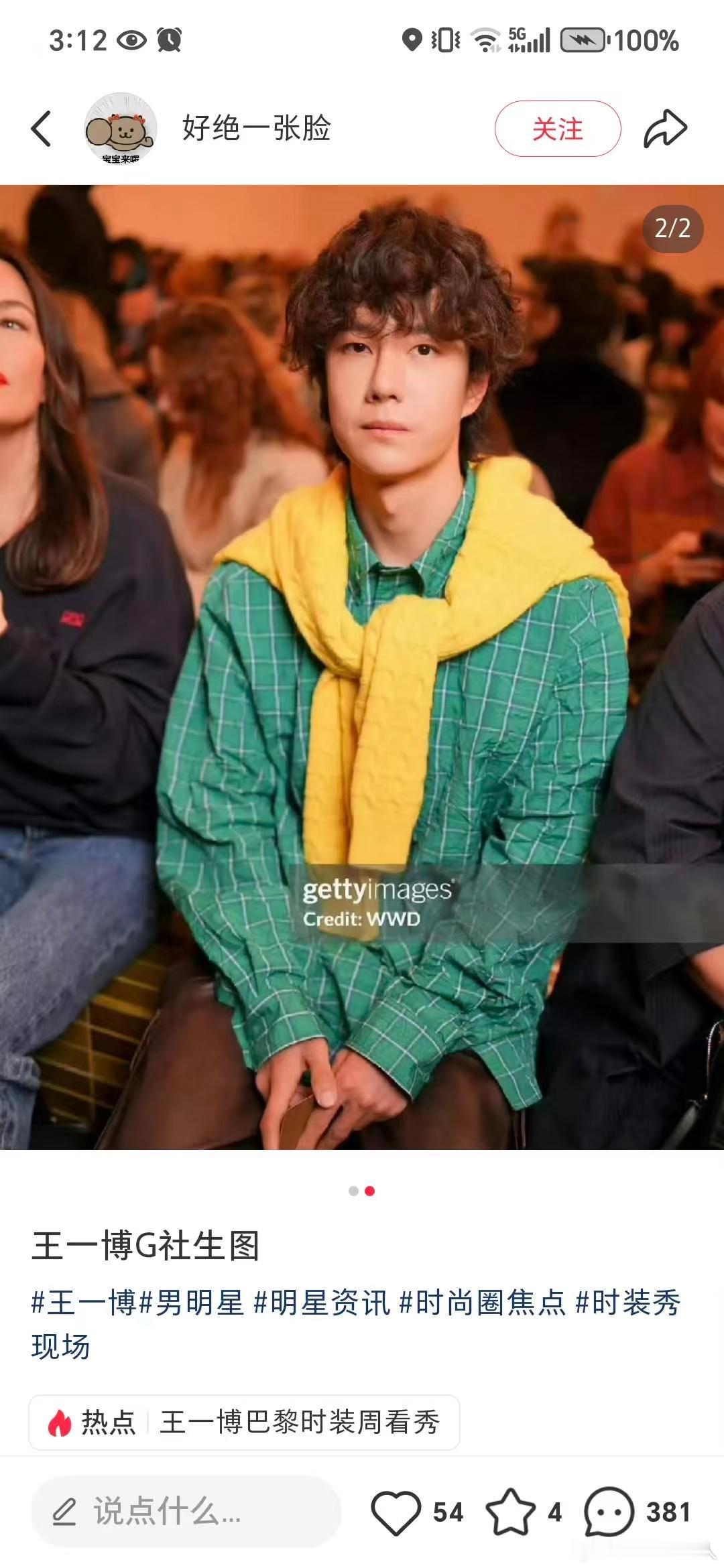 用户10xxx37 3 2025-10-04 21:36 WWD这次内场给人王一博照的G社生图虽有些变形,都有点不像博了,不如WWD给博抓拍的外场下车视频,不耽误一博的帅。又不是就这一张生图与视频,某家吃饱了撑的,天天不关注自家,天天关注别人呵呵了