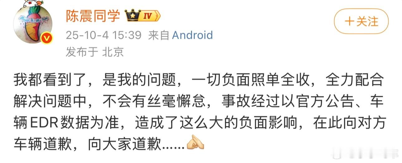 陈震道歉了!服不服?这就对了!现在他自己明白了,但那些在我评论区说他有钱不用道歉