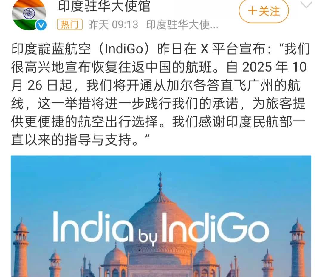 该来的还是要来了!印度加尔各答直飞中国广州的航班将于10月底启动! 印象中疫情时期中印直航就停了,之前转机需9小时,10月26日开始加尔各答直飞广州则可缩短至6小时。 这边k签推出,那边即恢复直航。说没有关联谁信?但。。。为什么又是广州?