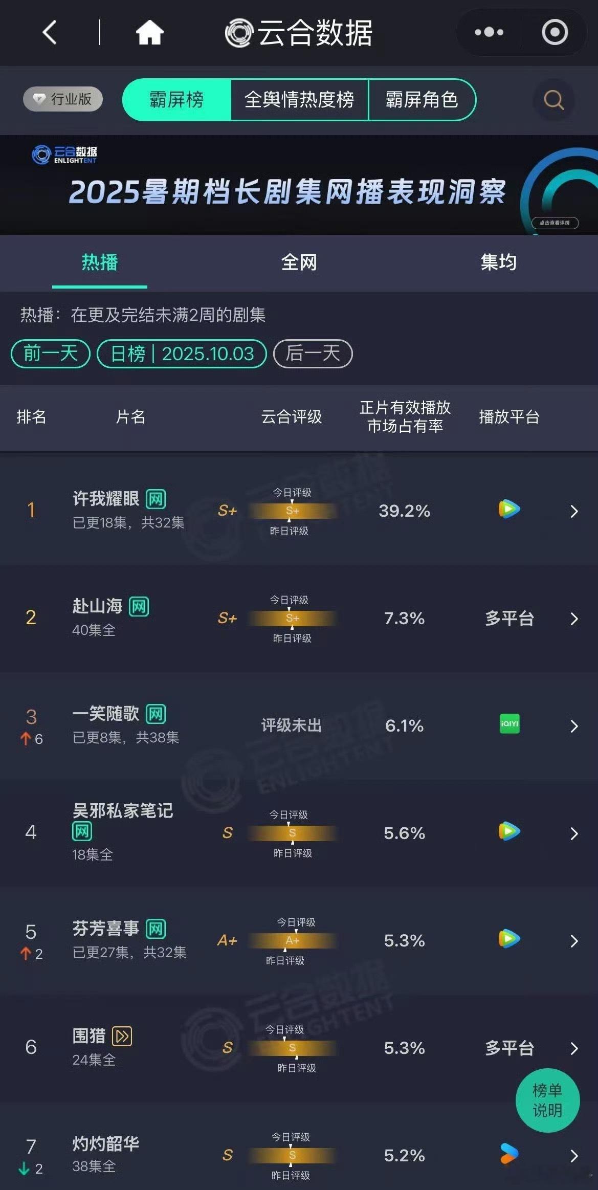 赵露思《许我耀眼》最新云合📈:39.2%!!按照这速度破40%就是明后天的事了。要知道云合历史上破40的只有五部[捂嘴哭]这谁看了不说一声:伟大!!