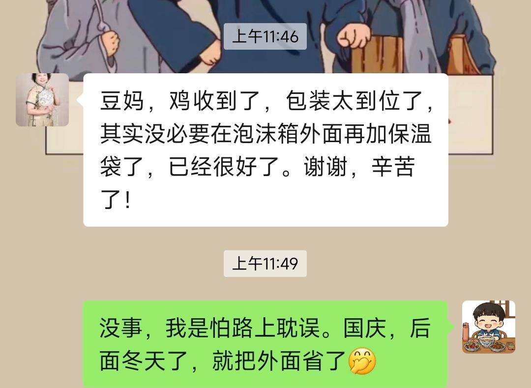 今天发了70只鸡。光是运费就花了1180元。 说实话,这大概率就是我们坚持养鸡的意义。 尤其是陆续收到食客们的反馈,心里还是美滋滋的。 上午有个网友针对性问:人生病就不吃抗生素吗? 我想他可能是看到我之前说,豆爸养鸡从不喂抗生素这件事。 这事如要掰扯,那可能真得专家才能有理有据了。我们吧,怕是没办法解答。 只能说,我们养鸡,不用抗生素,也就是自己的一厢情愿。 起初就是自己想吃。 觉得市场上的鸡五花八门,刚好咱们也不会挑选。索性自己学着养,万一养好了再去卖一卖,也算是把农场救活了。 就这么误打误撞,豆爸真成了养鸡。 养鸡最大的收获还真不是说卖了多少只,而是当我们把鸡卖给食客,食客的反馈,那才是真正的价值体现,觉得自己做了一件很有意义的事,哪怕它很累。 但在我心里,我更喜欢的是,当听到食客说家中的孩子喜欢吃,那份成就无以言表。 豆豆是很挑食的,吃鸡只喝鸡汤和鸡胸肉,鸭鹅都不愿吃,独爱鸡肉。 可我又知道,孩子都爱吃外面的。 以至于,我常常跟他念叨,少吃别吃不能吃,吃家里就好。 我知道,我们就是小人物,没法去改变任何。只能说,尽量避免。 就如我跟豆爸说,我能避免食品安全吗?不能,但我可以做的是可以少吃一点。 就如如今,豆豆爱喝鸡汤,那我们就喝家里的。吃鸡肉,吃家里的。当然,他也不再爱吃外面的鸡肉了。 所以当客户说,家里的孩子爱吃,吃了很多。 我心中欣慰,无论孩子吃了多少,最起码每一口我们给予的都是绝对的健康。 这也是为什么农业养殖再辛苦,豆爸觉得值,他说他在创造价值——食品健康的价值。