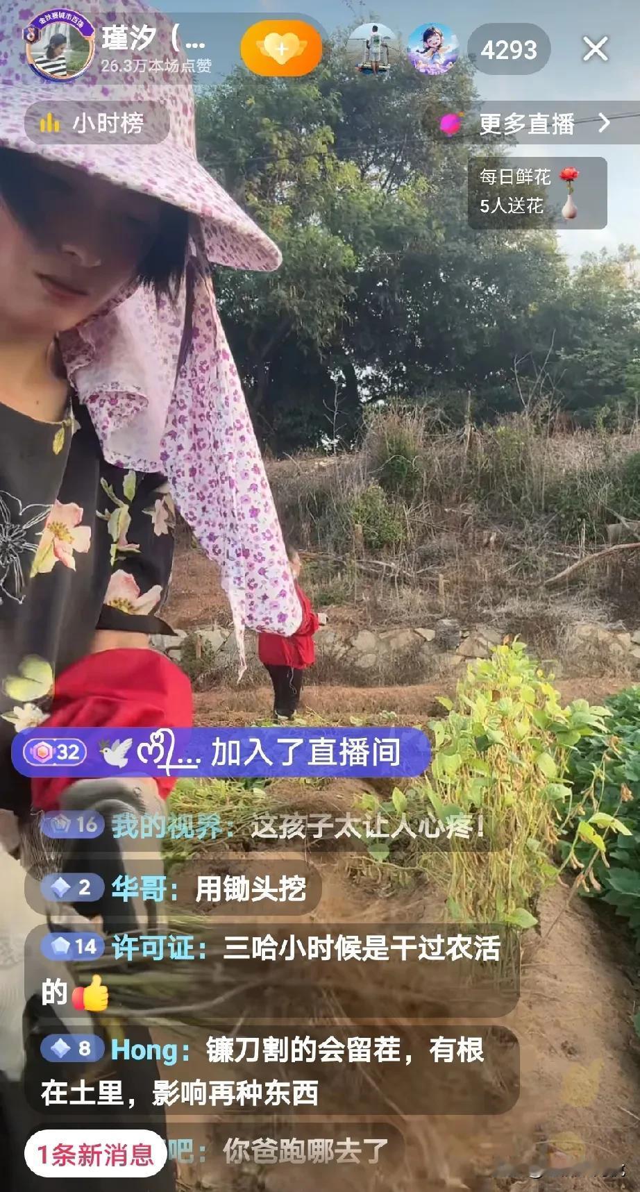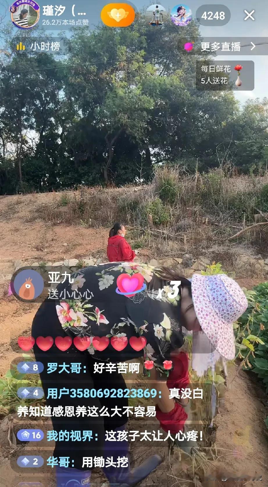 瑾汐又出来直播了, 这次她直播是在豆地里帮妈妈干活, 也不知道这次大哈二哈怎么没有跟来啊, 之前看过大哈二哈跟着瑾汐一起帮养母干活, 说真的看到瑾汐在地里帮妈妈干活,感觉她和她的两个姐姐确实是天壤之别, 可能大哈二哈从小都没干过这样的活, 她们俩天生就是公主命。 看到有网友说,真的没有才养,知道感恩养这么大不容易。 从来没有喜欢过大哈二哈,只喜欢瑾汐一人