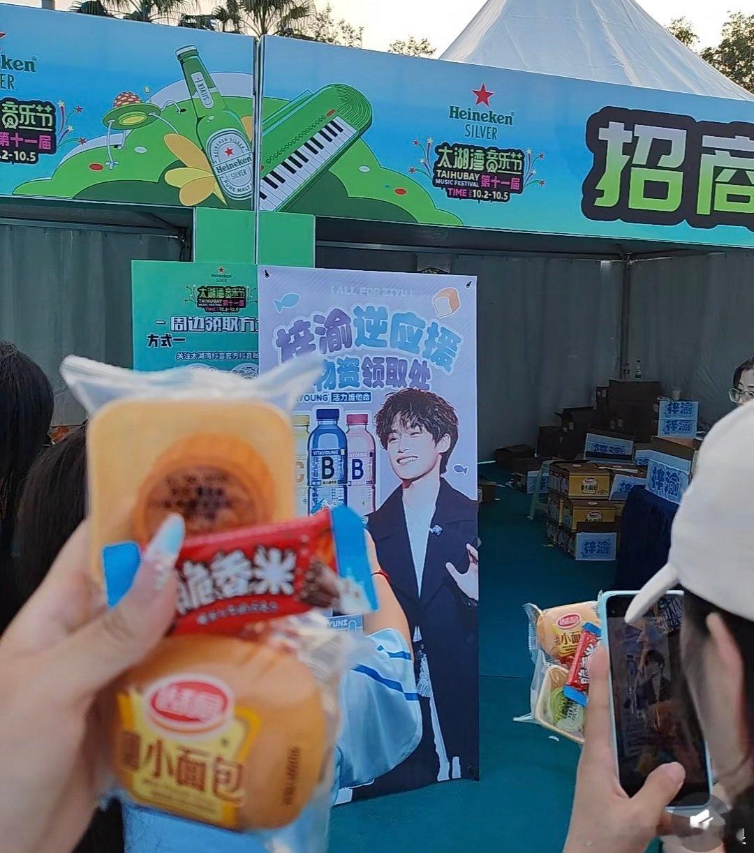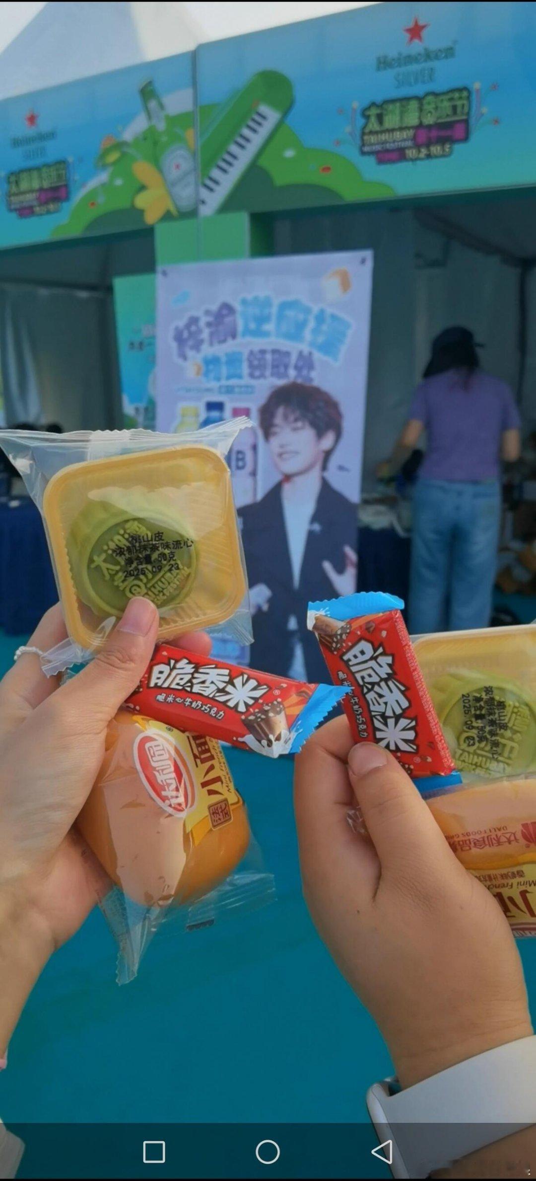 梓渝太湖湾音乐节逆应援,给粉丝送月饼和零食🥮