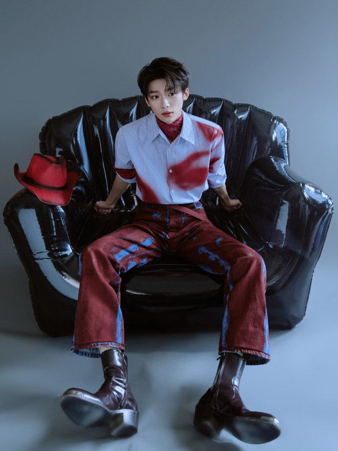 梓渝以红色之炽以热爱之姿赴舞台之约,梓渝红蓝撞色音乐节look,满分帅感的梓渝上线啦,期待住待会的舞台见啦~